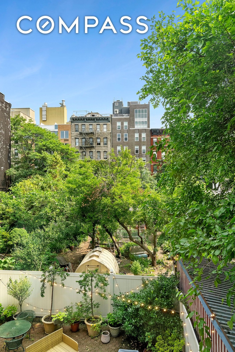 One of a kind full floor two bedroom two bath condo with triple exposure in a boutique building with low taxes. Enjoy a spectacular zen like setting with generous sun from three exposures overlooking glorious blooming East Village community gardens. There is nothing like it. Low carrying charges too, taxes are just $128 a month with a 421A tax abatement that goes until 2032.