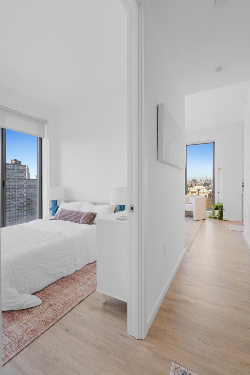 The D-line is a two bedroom one bathroom apartment perfect for those who work from home, or need extra space for family and friends. Enjoy majestic views of downtown Brooklyn and the Manhattan skyline from the comfort of your own home with floor to ceiling windows throughout each room of the unit. The I line features one full bathroom with a large walk-in shower. The D Line also features a brand new Blomberg appliance package, double door bedroom closets, and in-unit washer/dryer.