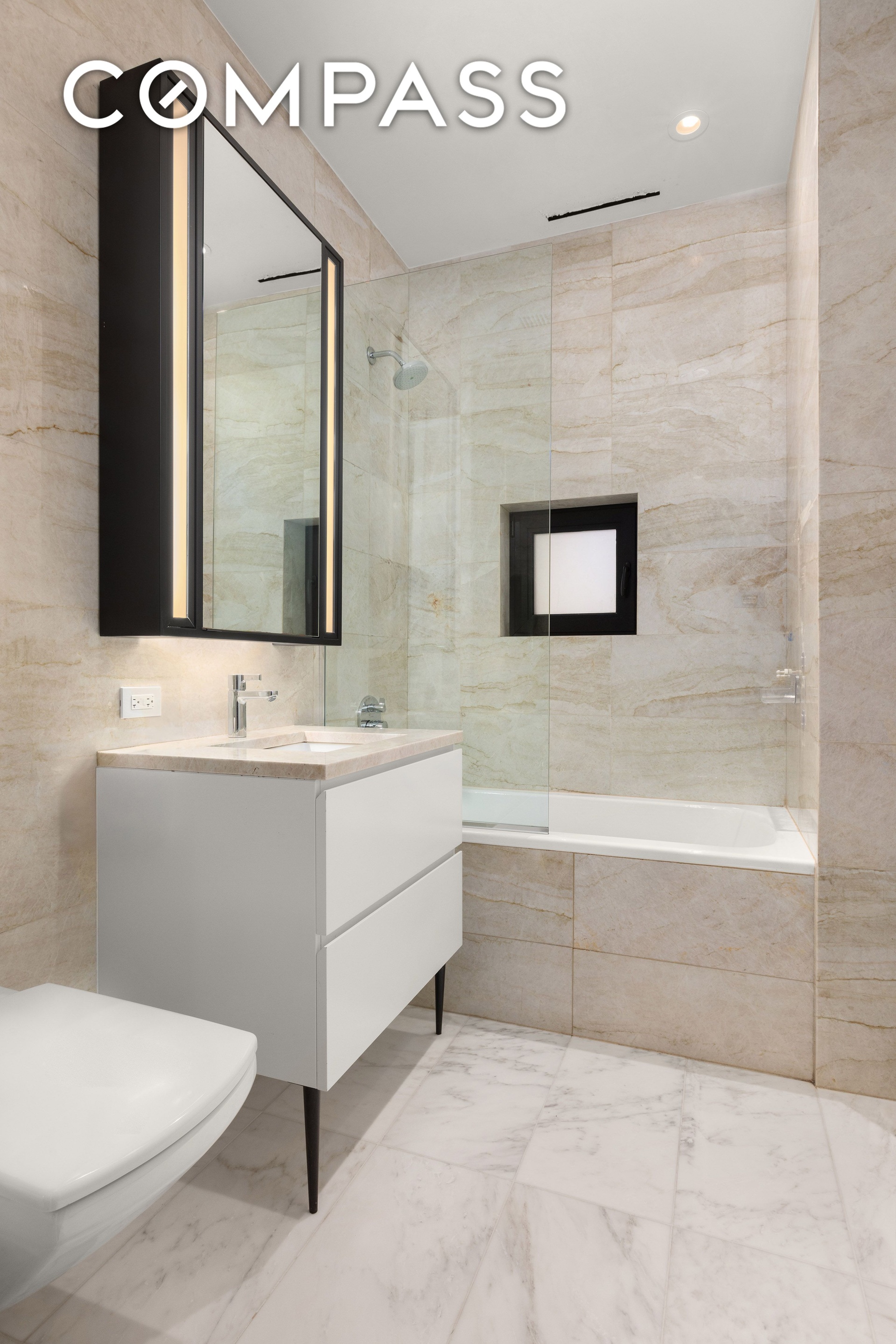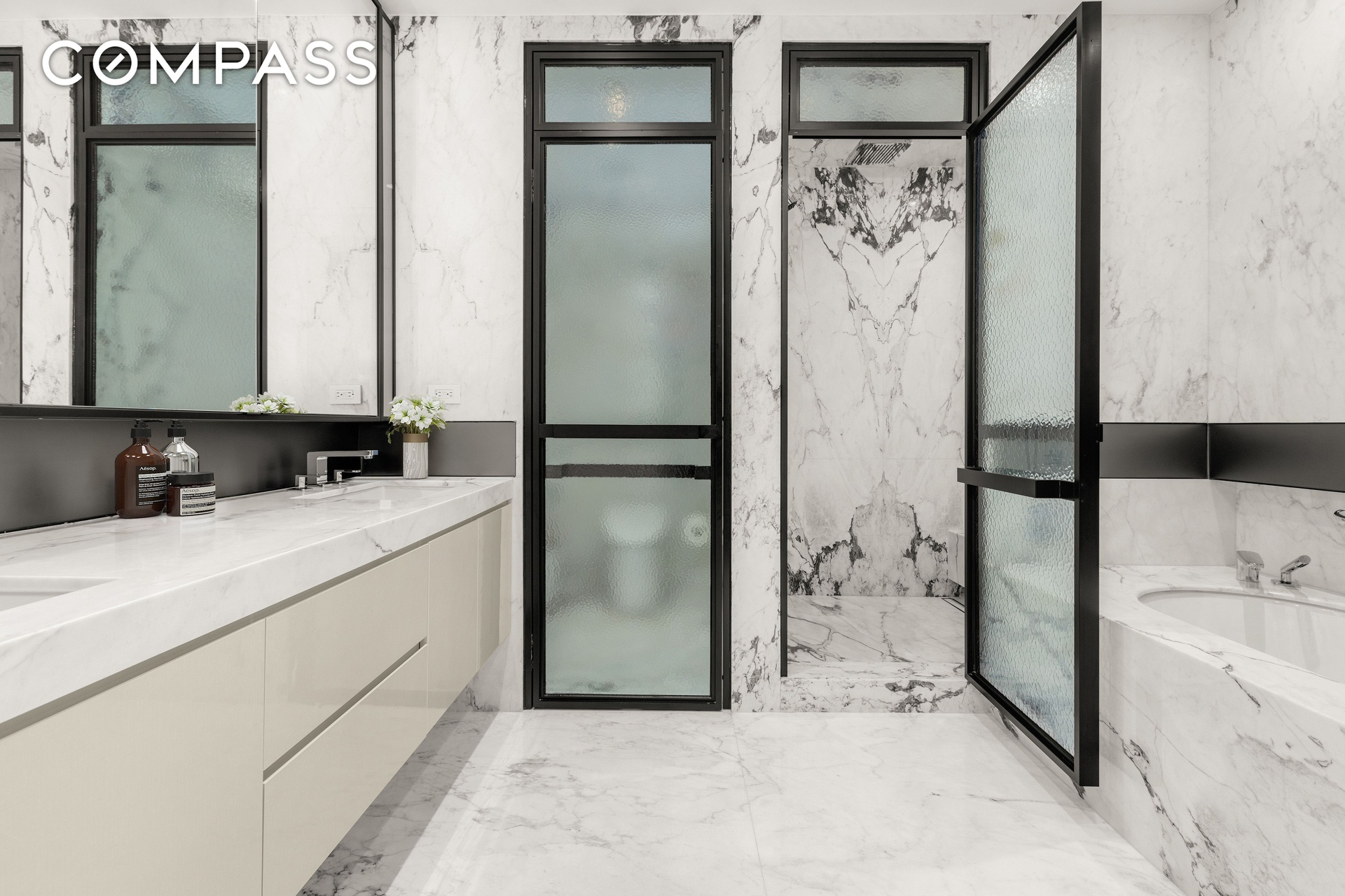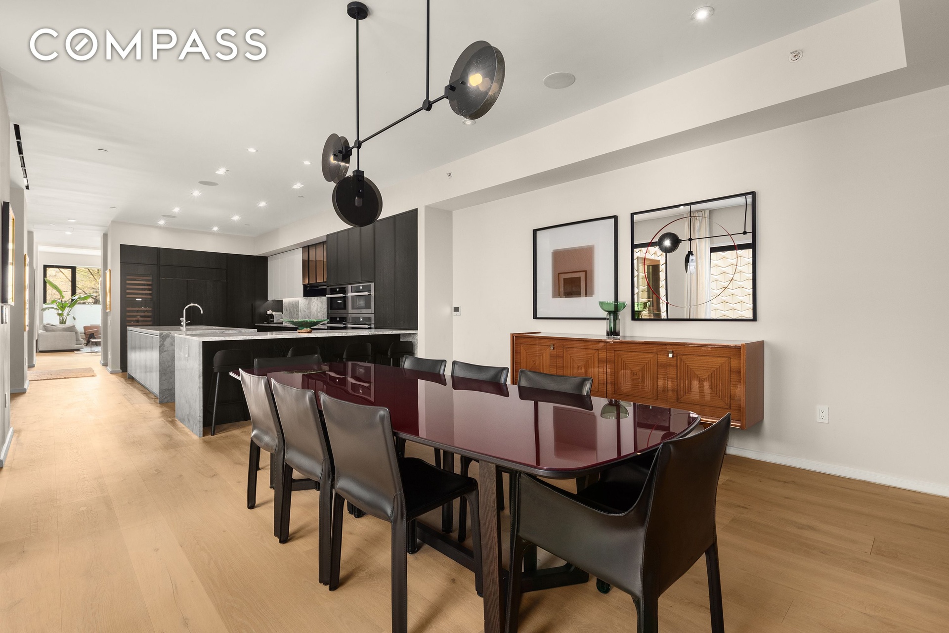 Experience the ultimate in design and craftsmanship in this extraordinary home, envisioned by renowned architect Thomas Juul-Hansen. Spanning three grand levels and accessible through either the main lobby or a private steel-canopied entrance, this residence delivers townhouse privacy with full-service condo amenities. Step into the expansive great room, where soaring ceilings and refined materials set a tone of understated elegance. The adjacent chef’s kitchen is both stunning and functional, complete with a large cooking island, handcrafted cabinetry, and state-of-the-art Sub-Zero and Miele appliances, including dual wall ovens, side-by-side refrigerators, a wine fridge, and oversized dishwashers. The kitchen’s eat-in area and the guest bedroom overlook a dramatic central atrium, flooding the space with natural light and creating a sense of calm.