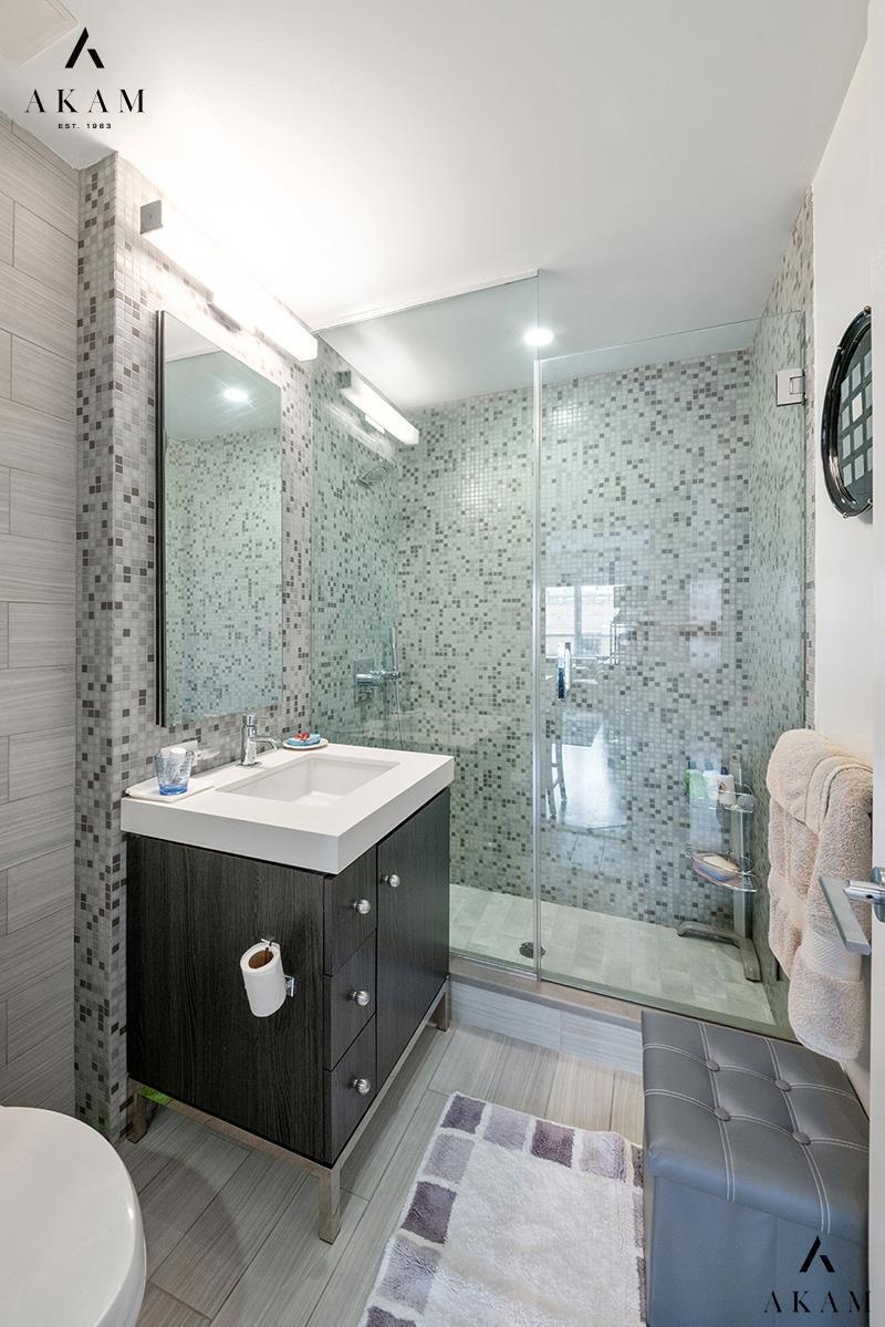 The expertly designed bathroom is a true retreat, with radiant heated floors and a sleek walk-in shower. Ample closet space, central AC and heat, and a proper entryway add to the thoughtful design and functionality of this exceptional home.