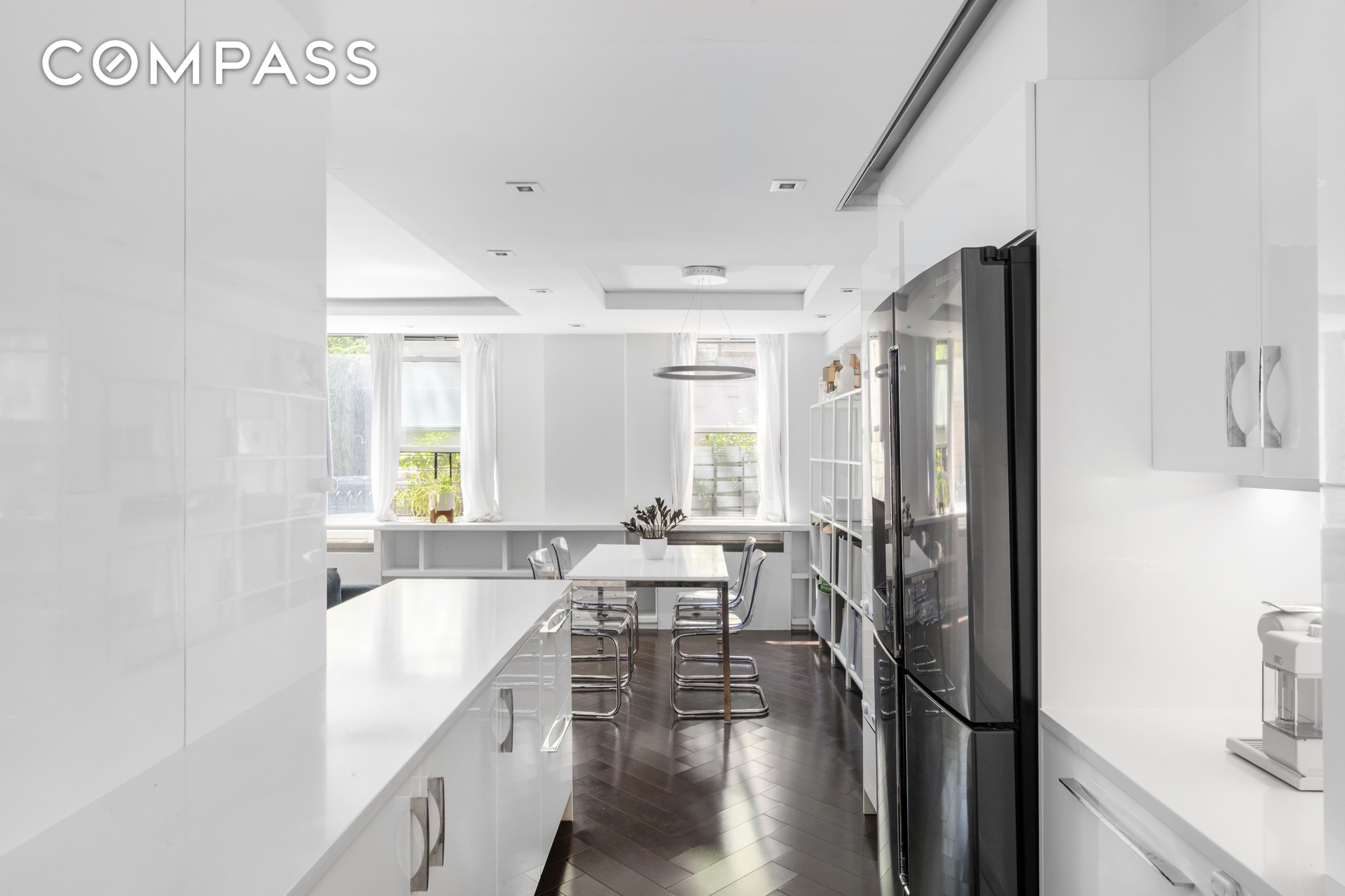 The chef's kitchen is a culinary enthusiast's dream, equipped with stainless steel appliances and an open layout that seamlessly flows into the living space. Facing south, the living space gets terrific natural sunlight. Whether you're hosting a dinner party or enjoying a quiet evening, this apartment is sure to impress.