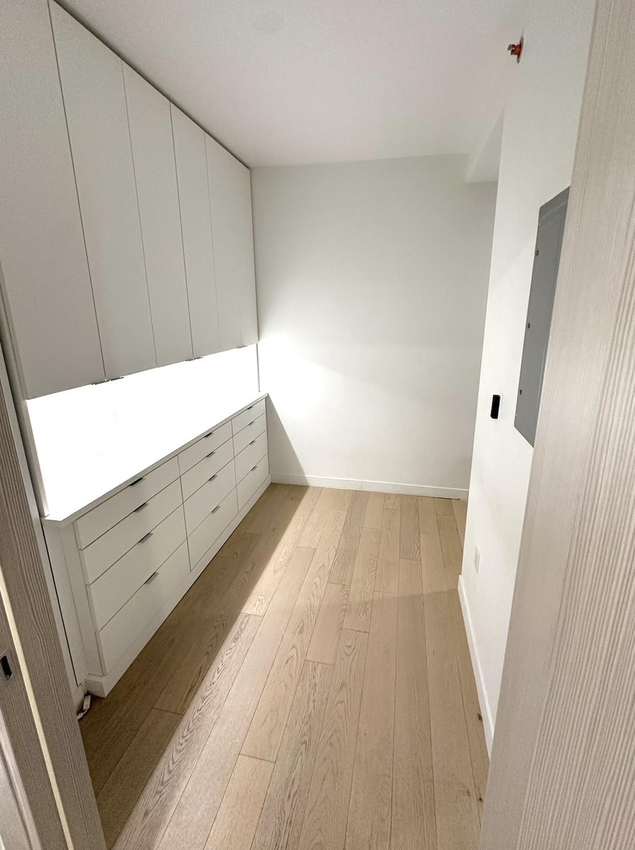 Perched on a high floor for optimal sunlight and minimal street noise, this designer studio in East Harlem’s newest boutique condominium, HUXLEY, offers a sleek, thoughtful layout with premium imported Italian finishes, wide plank oak flooring, and oversized black-framed windows that fully open to create a seamless indoor/outdoor experience.