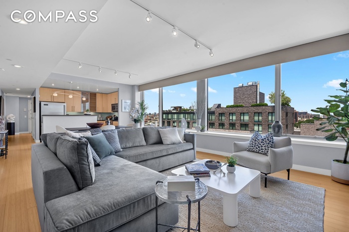 Rarely available, spectacular, almost 1500 sq ft 3 bed/2. The apt features two oversized bedrooms with a third which can be used as office/bedroom complete with a murphy bed. This is a premium corner Penthouse with sunny and bright N/S exposure and over-sized floor to ceiling windows throughout the entire living room. The en-suite master bedroom has a marble bathroom with separate glass shower stall, deep soaking bathtub + an abundance of cabinets and vanity storage. The huge gourmet kitchen comes with Stainless Steel Viking appliances, including dishwasher, built-in microwave, and opens to the loft-like spacious dining area and living room. In addition, there is a in unit Bosch W/D and custom-fitted closets. The Kalahari condo is conveniently located just a few blocks from Central Park and Marcus Garvey Park, with express 2/3 trains on the corner, B/C/6 trains and major bus routes a short distance away.