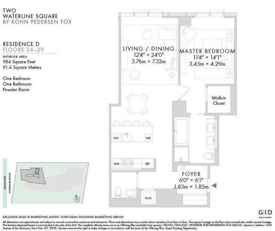20 Year 421A Tax Abatement Through 2039Residence 29D at Two Waterline Square is a remarkable one bedroom, one and a half bath home that defines modern luxury living.