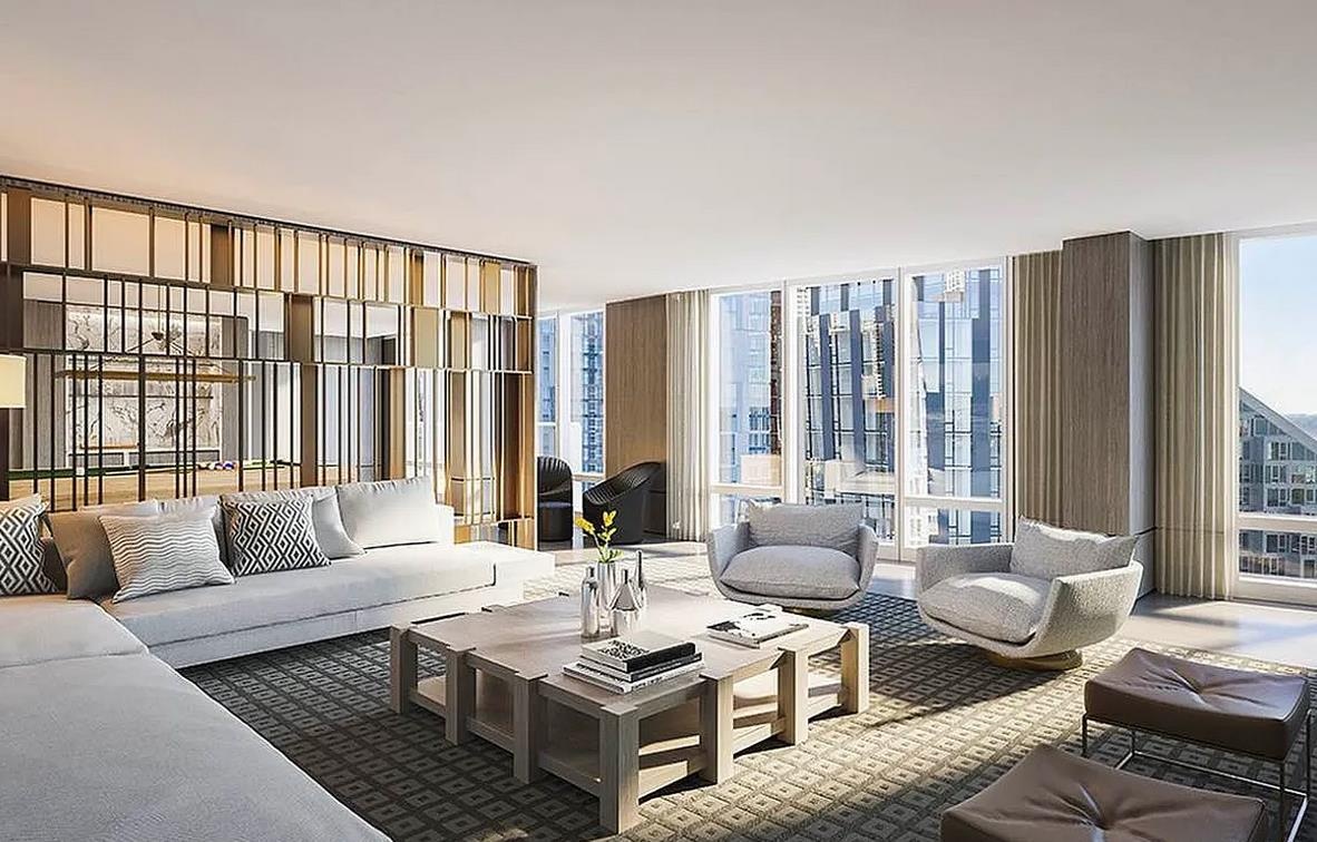 Two Waterline Square, designed by acclaimed architects Kohn Pedersen Fox Associates, is a striking addition to the Manhattan skyline. Its cascading glass facade harmonizes with its riverfront location, offering breathtaking views of the George Washington Bridge and the Upper West Side. Part of the visionary Waterline Square development, this residence is nestled within a thoughtfully designed community that bridges Midtown and the Upper West Side. The centerpiece of the development is a beautifully landscaped park, providing a rare blend of greenery and tranquility in the heart of the city.