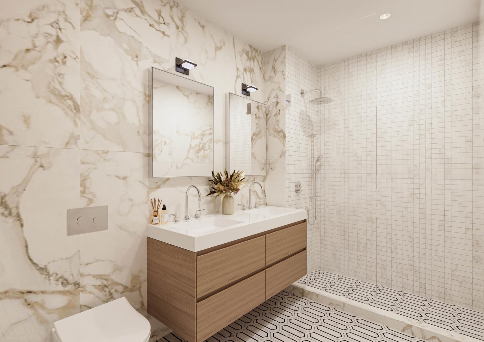 Interiors are as exceptional as they are comfortable. Graceful proportions, soaring ceilings and luxurious finishes are the hallmarks of these distinctive residences. The expansive spaces are framed by floor-to-ceiling triple-paned, superbly energy efficient windows that envelop each home with abundant natural light and captivating views of Forest Hills Gardens.
