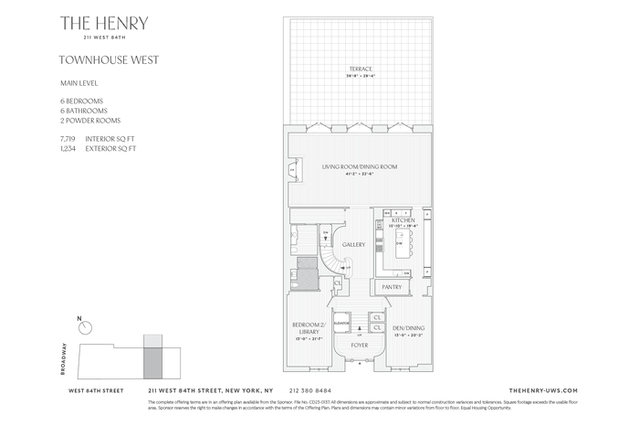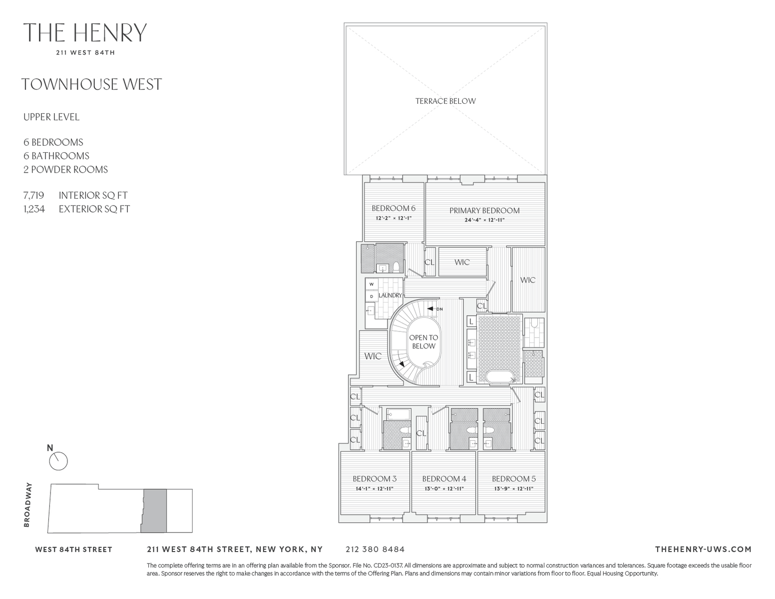 CLOSINGS BEGIN THIS FALL. Townhouse West is the rarest of finds. A 42-foot-wide townhouse with a garden, located in a full service, highly amenitized, condominium. TH West represents the best things about townhouse living with none of the downsides. It has width, space, security, outdoor space and ceiling heights ranging from 11 feet to 18 feet. The first floor of the Townhouse consists of a 42-foot-wide living room facing a stunning garden, and eat-in kitchen, complete with enormous pantry adjacent to a den or formal dining, a bedroom or library with its own full bath and a discrete and charming powder room. Upstairs are five bedrooms, each with an ensuite bath and generous closet space. The primary bedroom is 24 feet wide and overlooks the garden. It has two large closets and a beautiful five fixture primary bath with a floating tub. On the level below the living room is a great big space for each owner to design and use as they like.