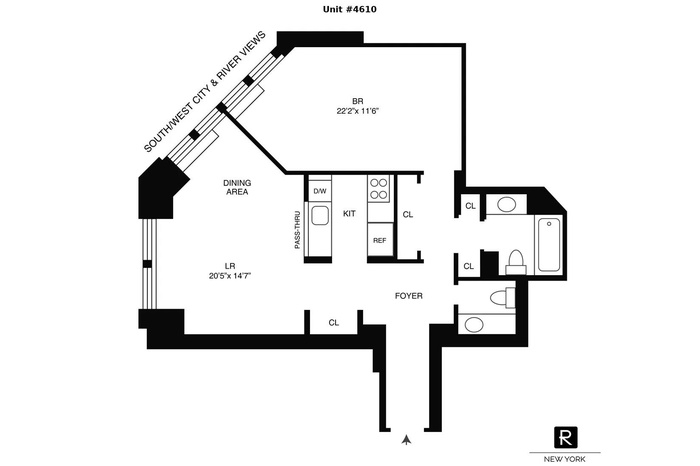 Perched on the 46th floor of the iconic CitySpire, this exquisitely renovated one-bedroom, one-and-a-half-bath residence offers an elegant blend of modern upgrades and timeless sophistication.