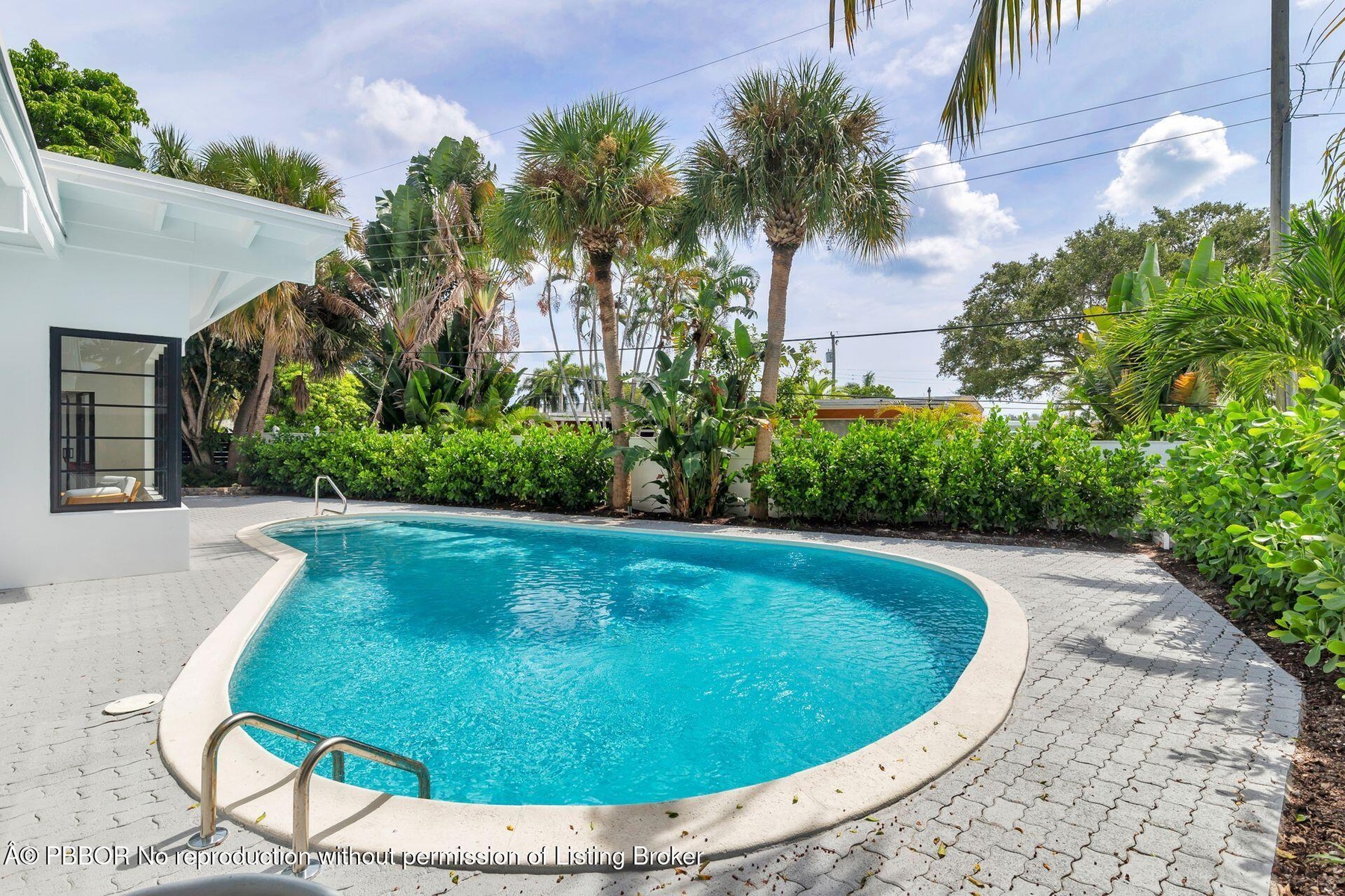 Mid-century modern architecture at its best! After a total renovation, this four-bedroom, three-bath home maintains all the classic elements of its original design. Generous-sized windows and soaring ceilings allow natural light to permeate throughout. The large entry foyer separates the bedroom wing from the open flow of the family gathering spaces. The extensive renovation encompasses all new hurricane-impact windows, new roof, new electrical system, two new HVAC units, new plumbing, and an air-conditioned garage. The original terrazzo floors have been meticulously restored, and the kitchen, laundry room, and baths have been completely reimagined. With its oversized pool and patio, the back yard is perfect for entertaining, and a well-shaded side yard is perfect for relaxing. The lush Florida landscaping and fencing provide full privacy and blend the lines between indoor and outdoor living. Close to Lake Clark Shores, the LCS town hall, tennis courts, pickleball courts, and children's playground.