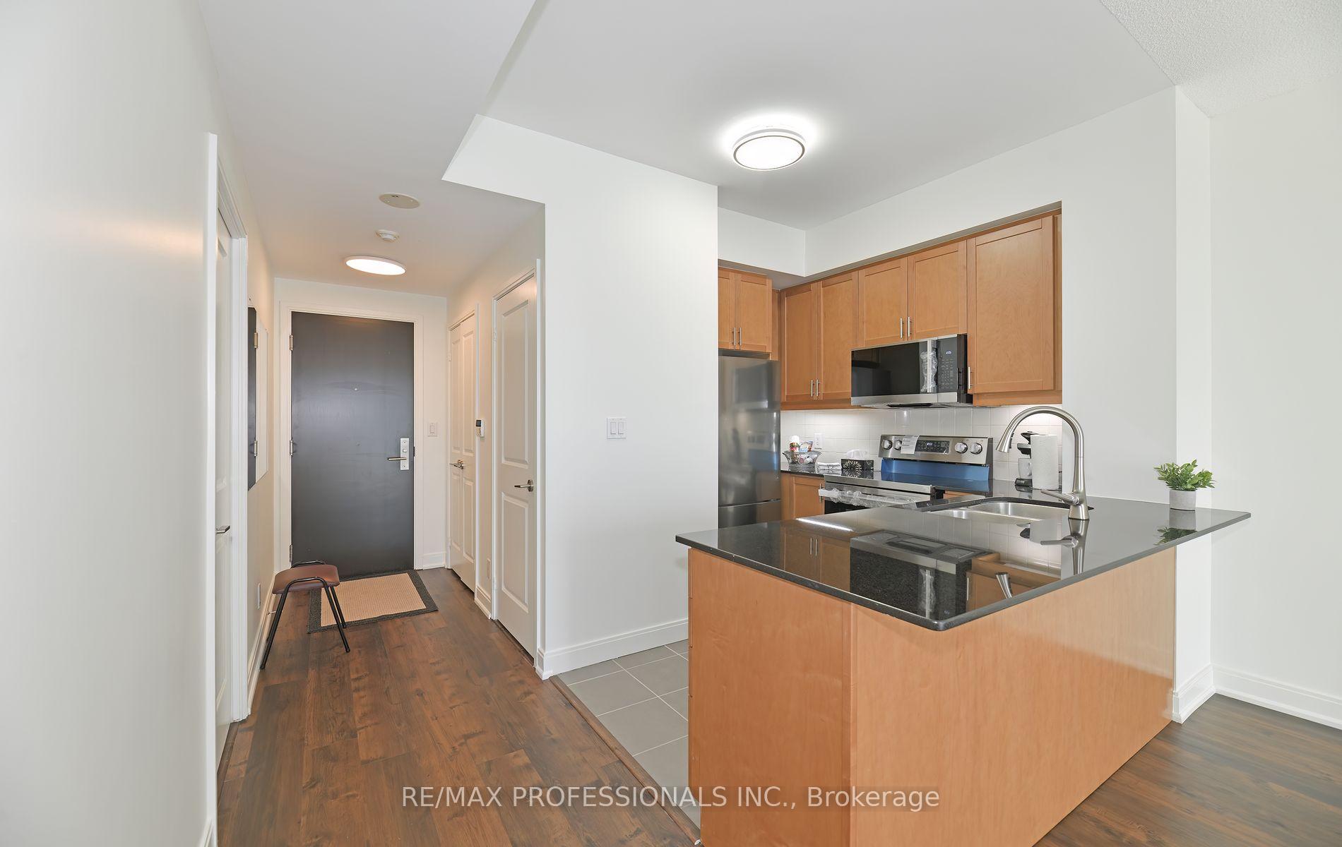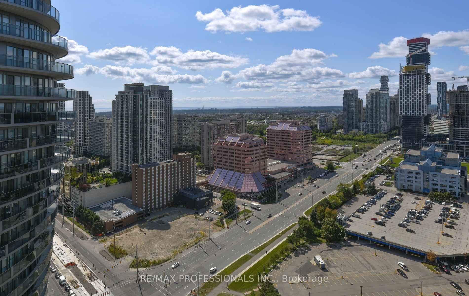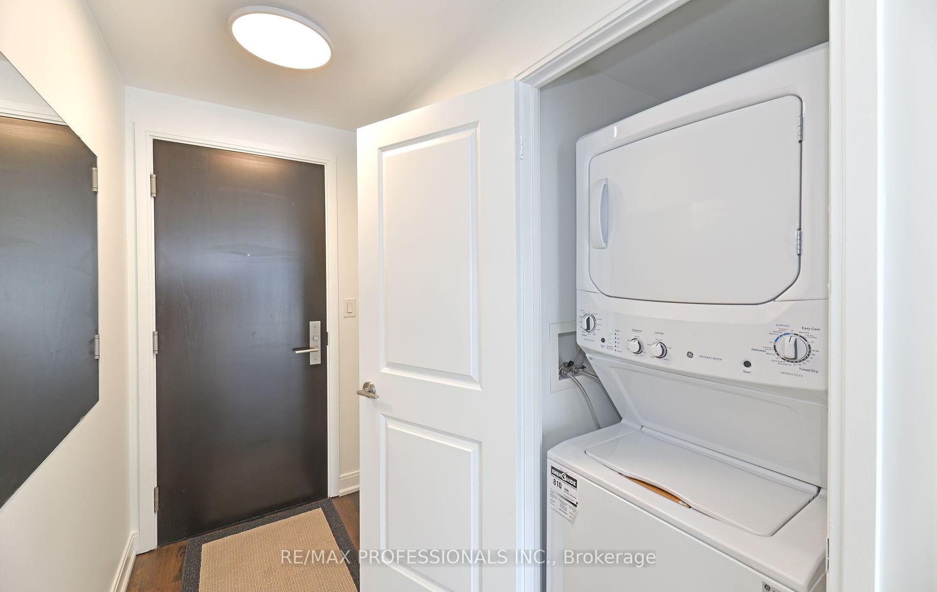 Welcome to the iconic Marilyn Monroe Towers! This super clean unit offers 1 bedroom, 1 bathroom, 1 parking space, and 1 locker. Featuring 9-foot ceilings and floor-to-ceiling windows, the suite is flooded with natural light and boasts two walk-outs to a Southwest-facing balcony with spectacular views. Freshly painted throughout, this condo includes brand-new appliances: fridge, stove, built-in dishwasher, built-in microwave (all stainless steel), plus stacked washer & dryer with new Vinyl flooring in living room, hall, and primary bedroom. Residents enjoy world-class amenities with 24-hour security and concierge service. Residents enjoy access to some of the best amenities in the city, with 24-hour security and concierge service for peace of mind. Perfectly located just a short walk to Square One, restaurants, public transit and with quick access to major highways, this home combines urban living with everyday comfort.