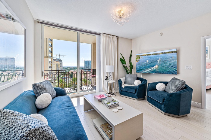 Stunning, fully furnished, and turnkey residence available for lease in the heart of downtown West Palm Beach with beautiful water views.