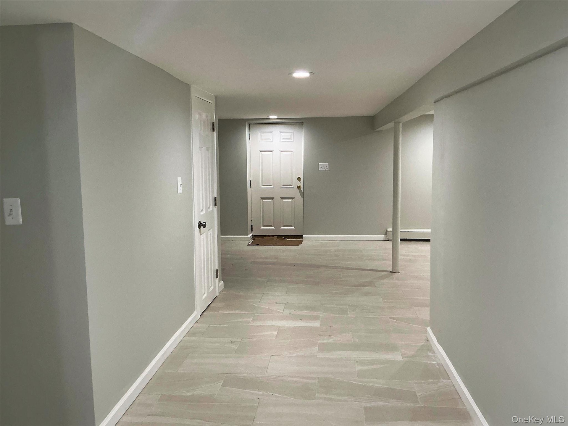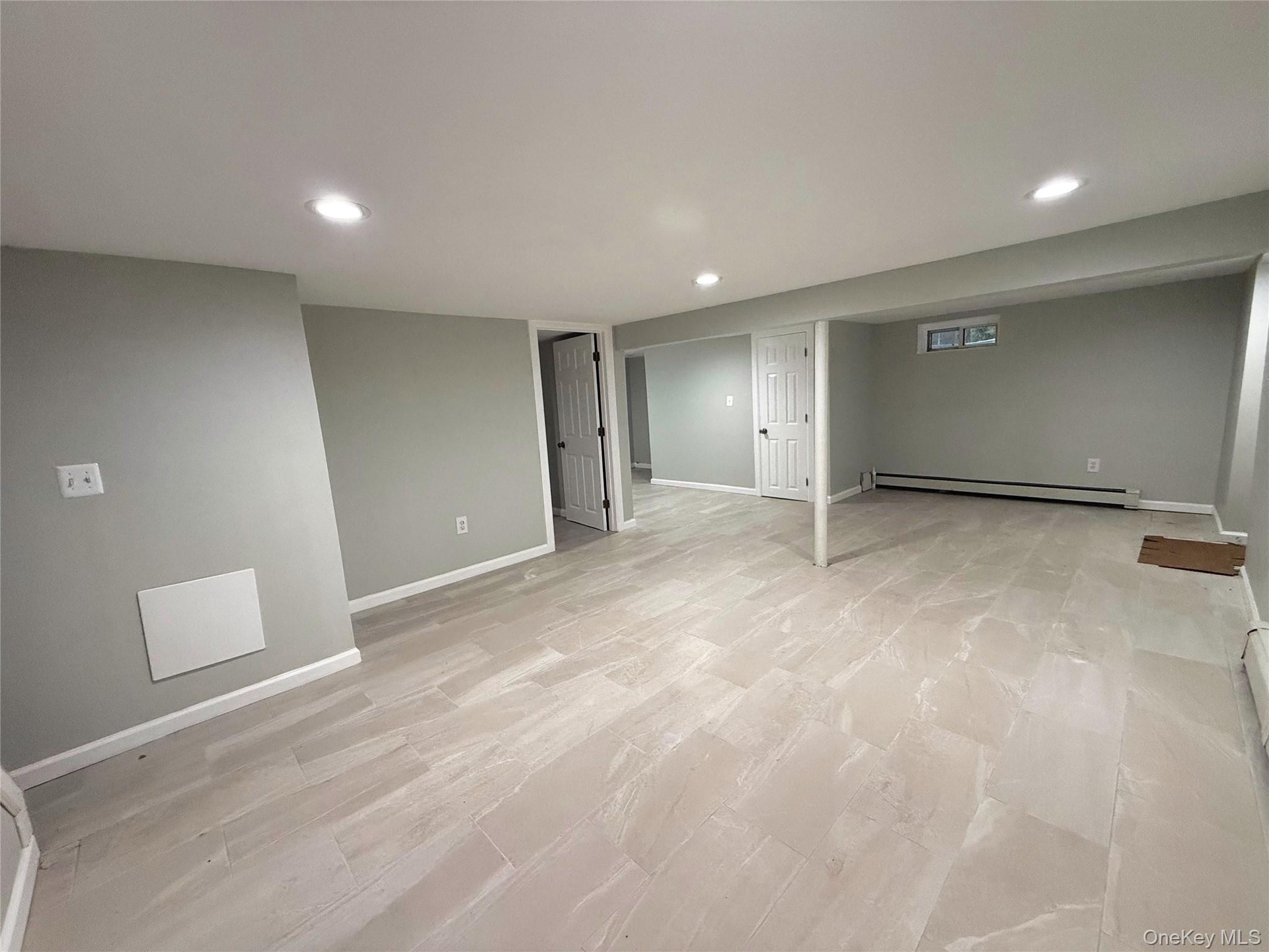 - Finished below grade area featuring recessed lighting and a baseboard heating unit