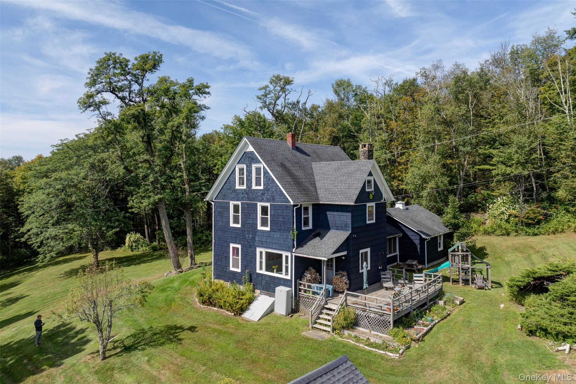 Set on more than 36 acres along one of the most coveted country roads in the area, this classic three-story farmhouse offers a perfect blend of spacious rural charm and expansive outdoor living. Built in 1908, the home is framed by lush lawns dotted with fruit trees and anchored by a serene swimming pond with dock. Inside, the layout centers around a retro-vibe kitchen with dining alcove crowned by an arch and bathed in sunlight. The kitchen offers access to the back deck with its refreshing outdoor shower and grounds beyond. A wood-paneled dining room invites festive gatherings, while the living room’s fireplace and vinyl-record ambiance recall lazy, fireside evenings. A breezeway lined with windows connects the house to the garage, adding to the home’s understated grace. Upstairs, the generous primary suite is a sanctuary, complemented by two additional bedrooms and a full bath. The finished attic expands the footprint with four versatile rooms—ideal for home offices, guest quarters, or creative space. The grounds are a birdwatcher’s paradise, alive with species like orioles, hawks, and warblers. There’s even a scenic old stone foundation, begging to be transformed into a dream outdoor focal point. Centrally situated, the property places you minutes from Callicoon Hills restaurant, shops in Jeffersonville and Roscoe, and a short drive to Callicoon and Livingston Manor.