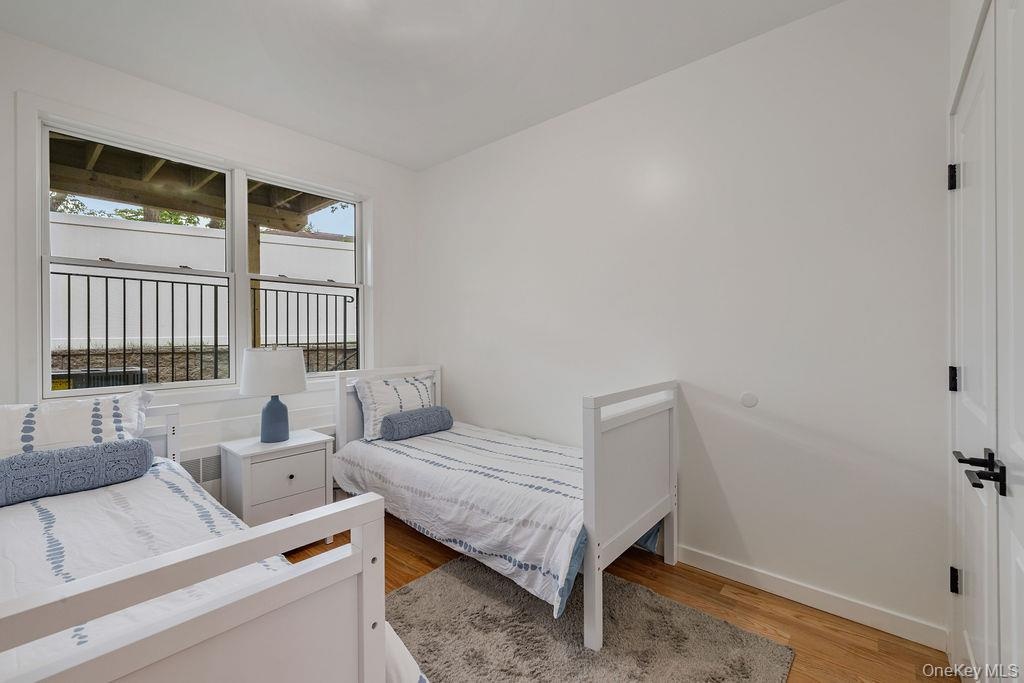 - Bedroom with light wood-style floors and baseboards