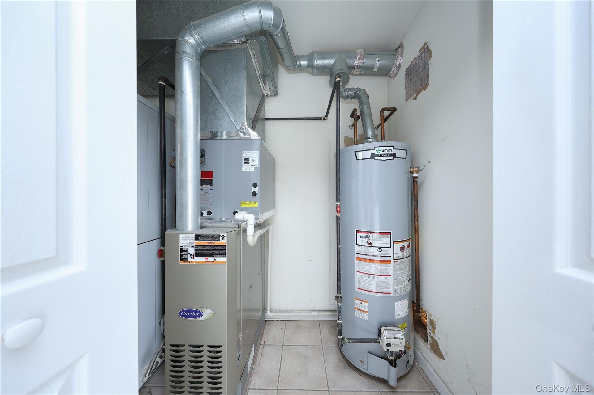 - Utilities featuring water heater and heating unit
