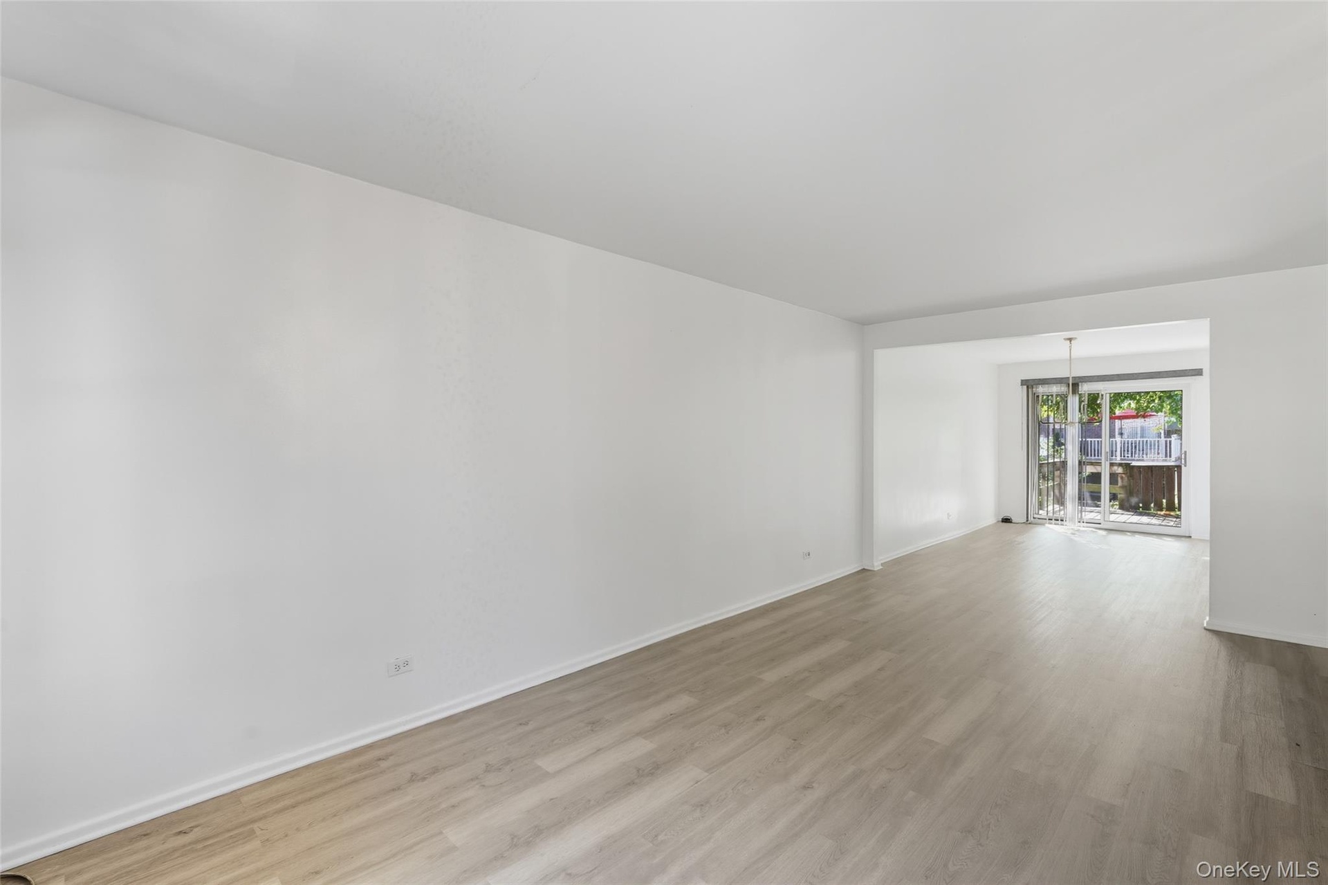 - Unfurnished room featuring radiator heating unit and light wood-style floors