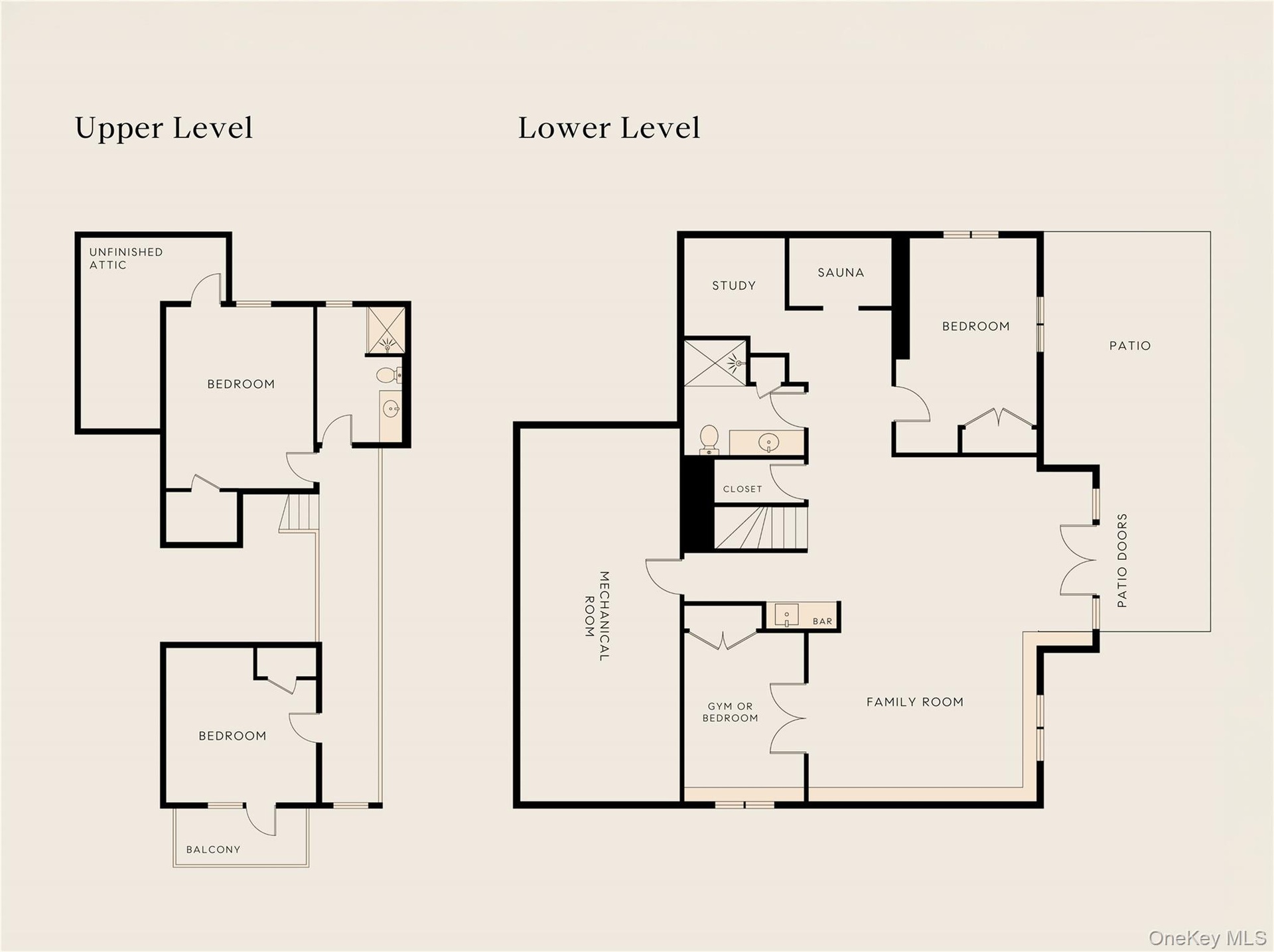Upstairs, two well-proportioned bedrooms are positioned at either end of the home and connected by an open corridor with railings that overlook the main living area below. A naturally lit shared bathroom serves both rooms. One bedroom features a charming Juliette balcony, while the other includes a spacious, unfinished dormer room above the garage - offering excellent potential for future expansion. Downstairs, the lower level provides a cozy and versatile relaxation space, including a fourth full bedroom and an additional room ideal for fitness, a reading lounge, or a fifth bedroom. Designed with comfort and entertainment in mind, this level is also outfitted with a full wet bar, a cedar sauna, full bath, and an expansive secondary living room that opens to a graceful flagstone terrace - perfect for indoor-outdoor relaxation.
