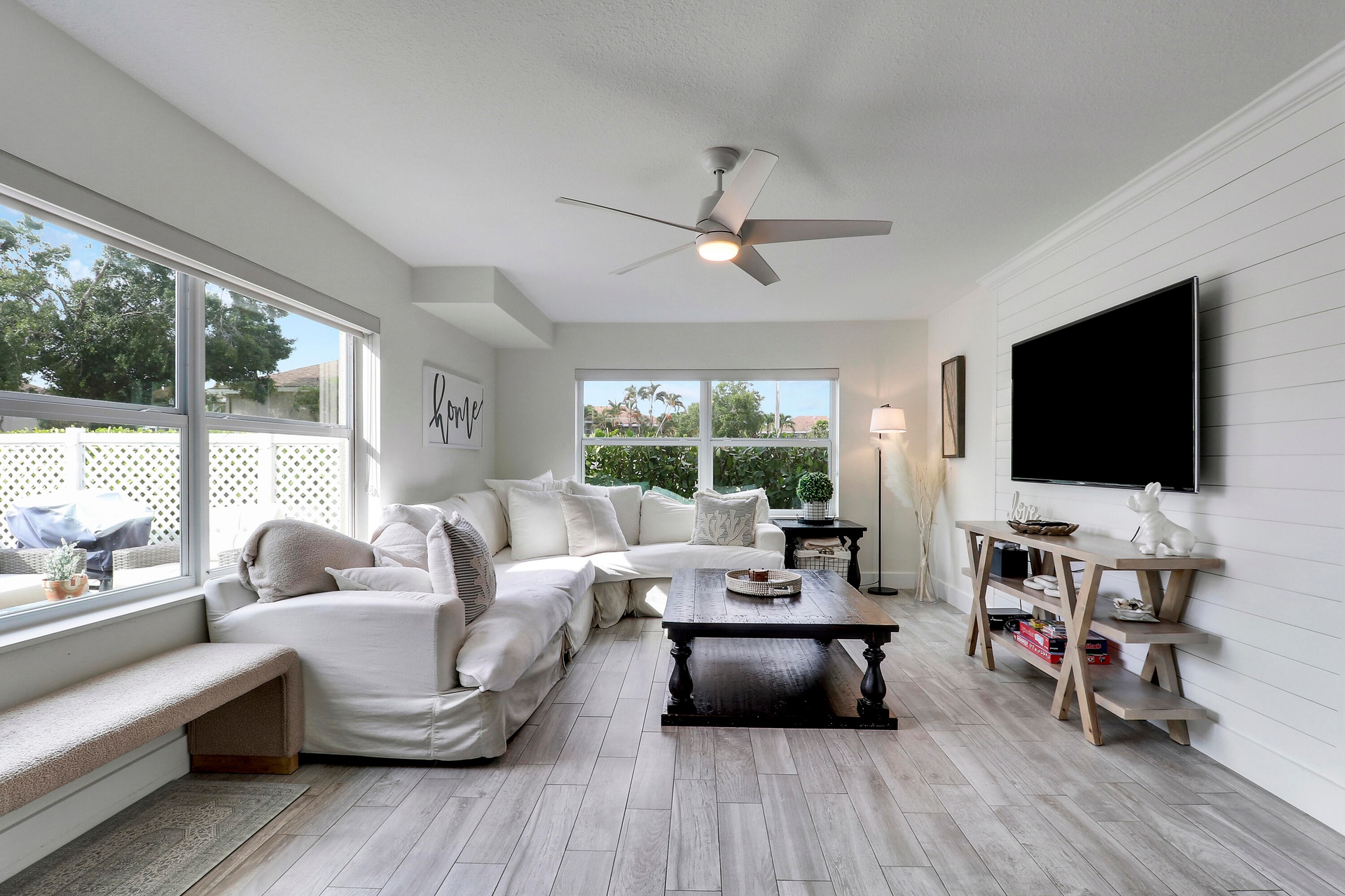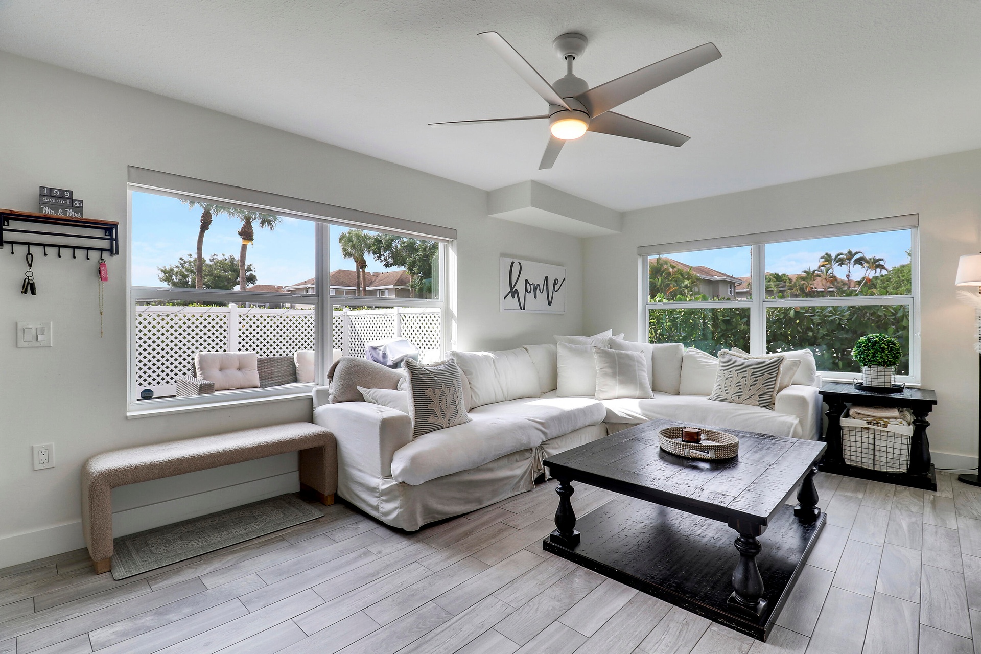 Wow! You will love this beautifully remodeled 2-bedroom, 2.5-bath townhome! Featuring a stunning kitchen with stainless steel appliances, quartz countertops and breakfast bar. Upgrades include stylish plank tile flooring, designer light fixtures and ceiling fans, newer air conditioner and IMPACT glass! Gorgeous second floor master bedroom suite with updated spa-like master bath. Enjoy entertaining and family gatherings on your large patio. Sunset Trace offers gated entry, 2 swimming pools, tennis and sidewalks for biking, walking and jogging. Located in the heart of Palm City close to shopping, dining, A+ rated schools, golf courses, marinas, I-95 and FL TPK ideal for commuters!