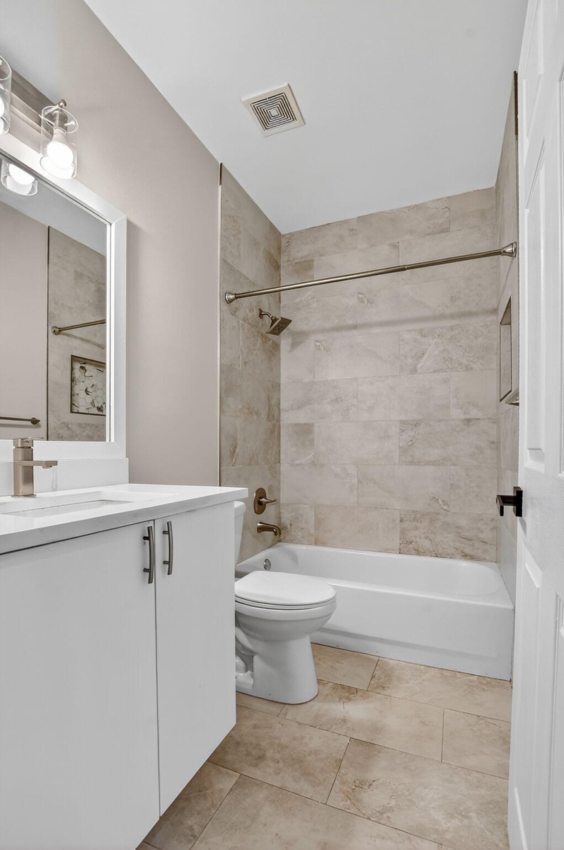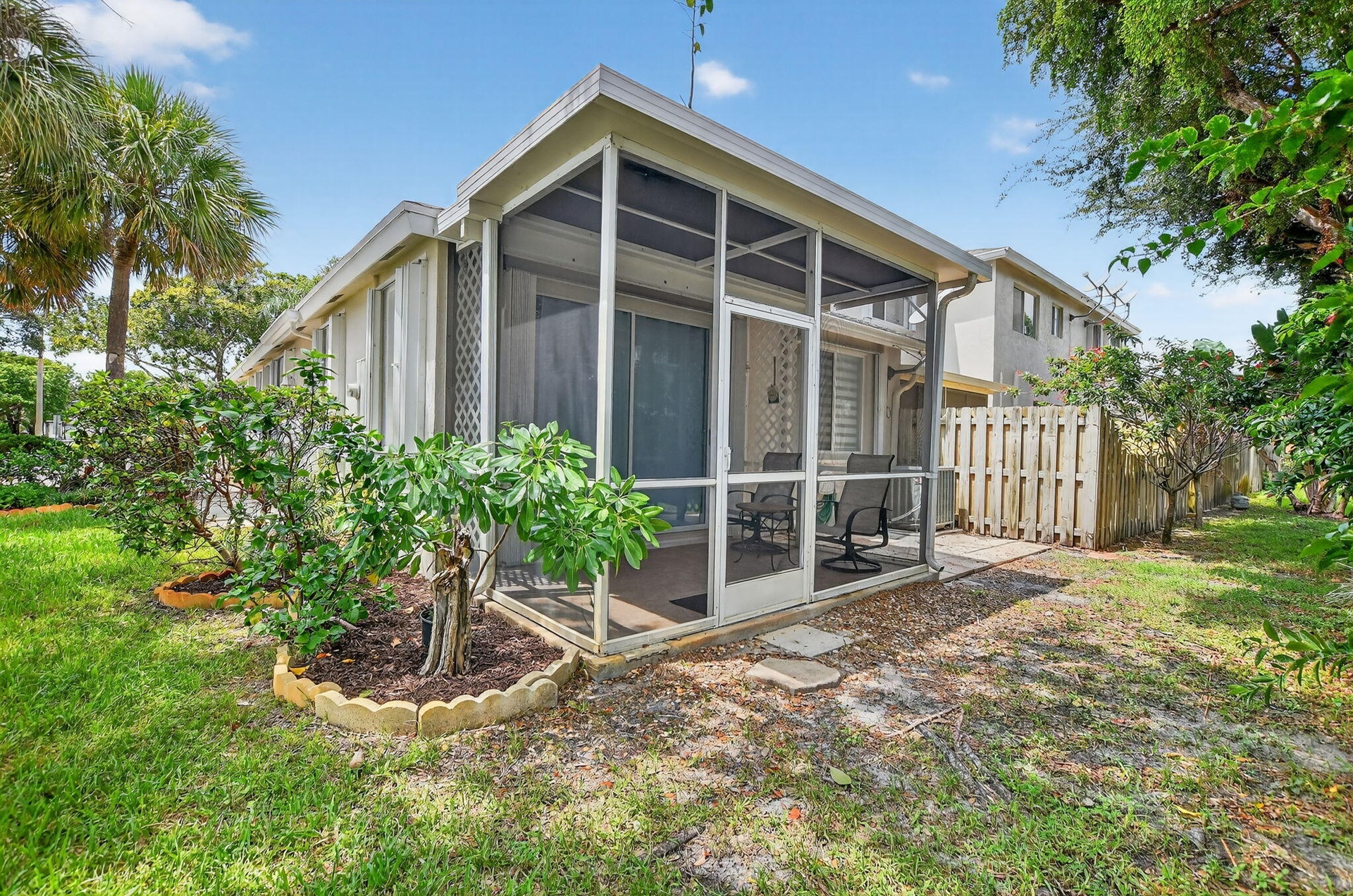 WOW!! Updated 2-Bed/2-Bath Corner Villa w/ 1-Car Garage!Move-in ready corner unit featuring vaulted ceilings and wood-look tile throughout. Updated kitchen with quartz waterfall counters, subway tile backsplash, stainless steel appliances, white cabinetry, and recessed lighting. Spacious open living & dining areas. Large primary suite with vaulted ceiling, walk-in closet, and remodeled bath with frameless shower & modern vanity. Generously sized 2nd bedroom with French door entry and adjacent updated full bath. Laundry/utility room inside. Screened patio, large side yard & backyard. Accordion shutters, newer roof, new blinds, fixtures, and fans throughout. Community offers pool and ample guest parking.