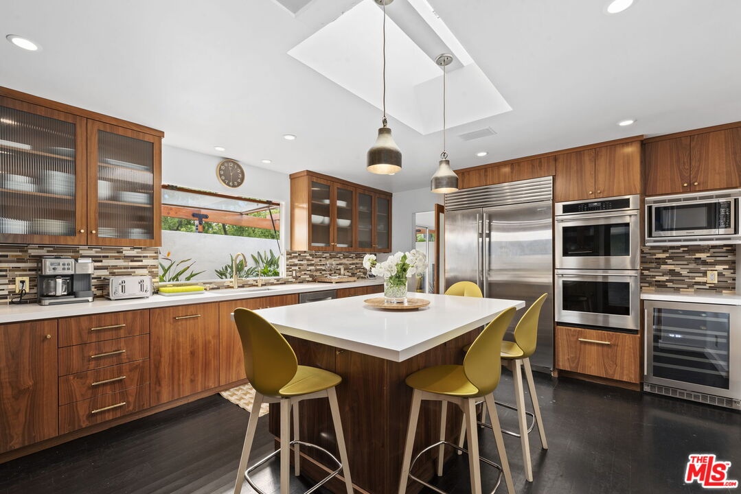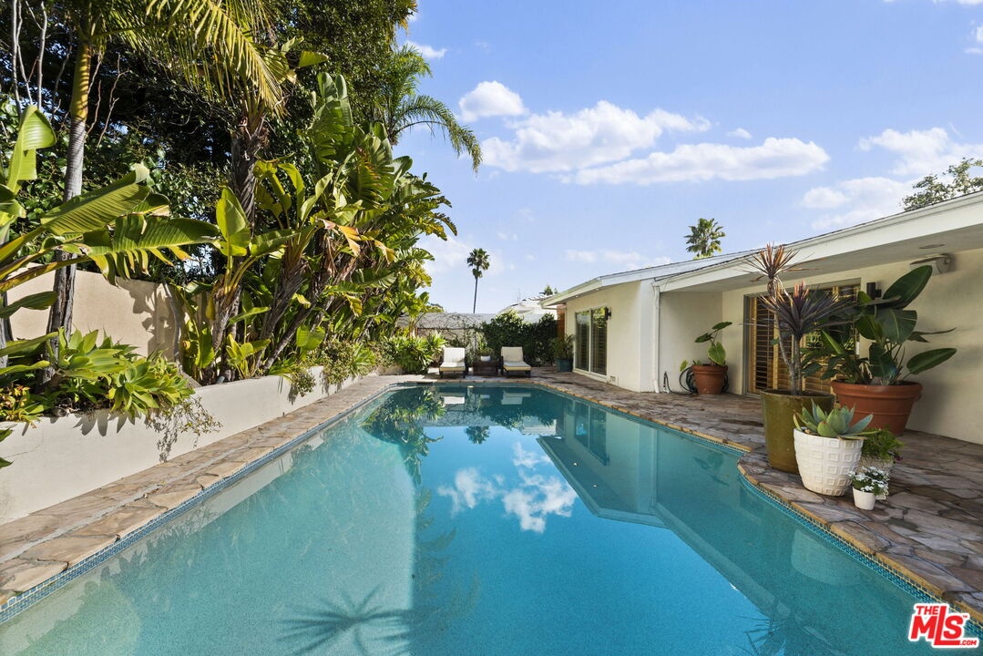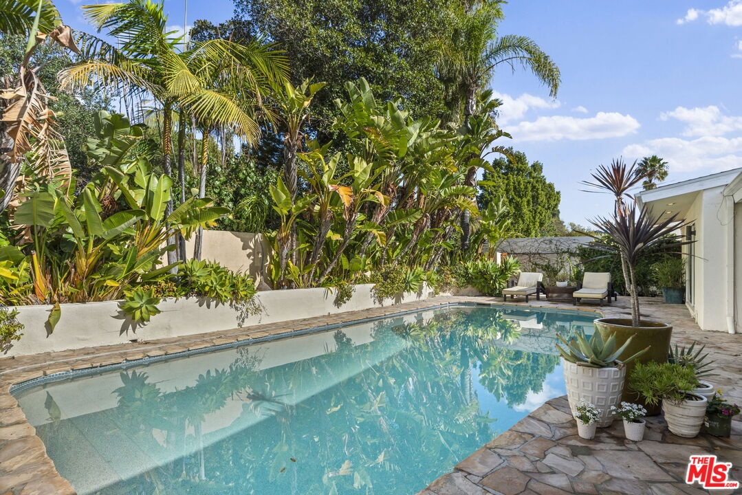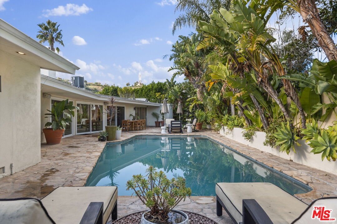 Discreetly nestled on a quiet cul-de-sac in the storied embrace of the Hollywood Hills, this luxurious Mid-Century residence offers a refined retreat where glamour meets serenity and privacy. As you enter through the elegant 12' formal entry, the main living spaces unfold in an open-plan flow with an artful interplay of natural light and shadow that shifts with the hours, illuminating exquisite details such as polished dark hardwood floors. The chef's kitchen, outfitted with top of the line stainless-steel appliances will be the envy of any chef. Luxurious bedrooms provide tranquil sanctuaries, including the primary suite overlooking the pool and a sumptuous bathroom boasting a soaking tub, separate sinks and walk-in steam shower opening to the backyard. The custom wardrobes are designed to cradle couture and keepsakes alike. Outside, the verdantly landscaped private yard is your own private oasis and continues with swaying palms and resort-style living providing year-round privacy and a sense of cinematic seclusion. Enjoy the private pool, firepit, lounging areas and grass area. Throughout the bespoke residence, there is custom chosen artwork, custom lighting and security cameras. 2 car garage with storage and parking for up to 10 cars. This is a rare residence that embodies the spirit of Hollywood luxury: a sanctuary where the art of living well meets the privacy and serenity of feeling like you are completely away from the city, offering a rare lease opportunity to reside in one of Los Angeles's most coveted enclaves. Also available unfurnished at $18,500 per month. Owner prefers a 1 year minimum but will consider 3 months plus. Will also consider a lease option/sale.
