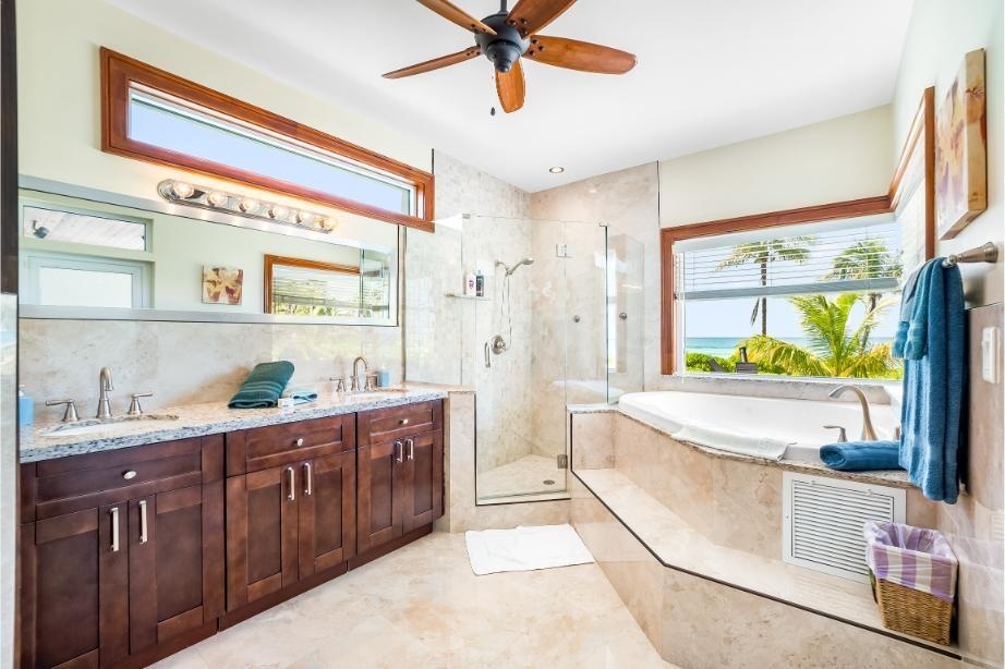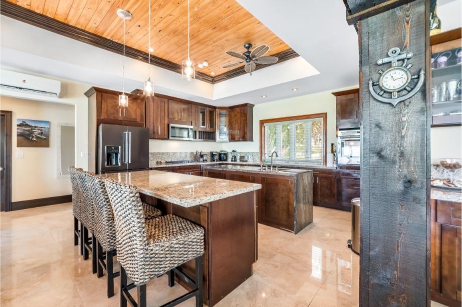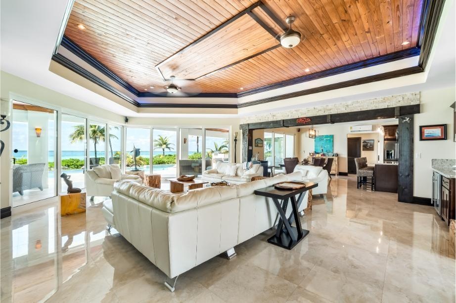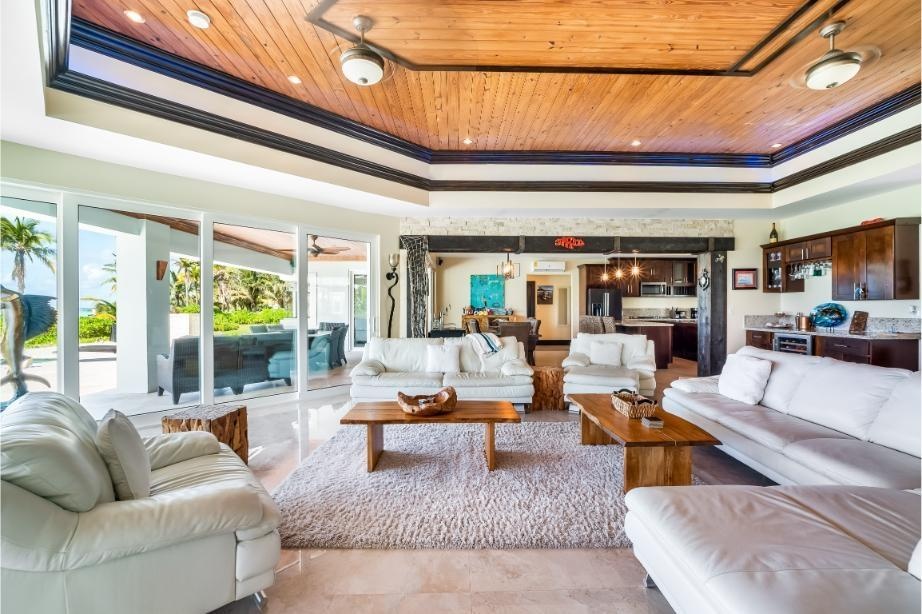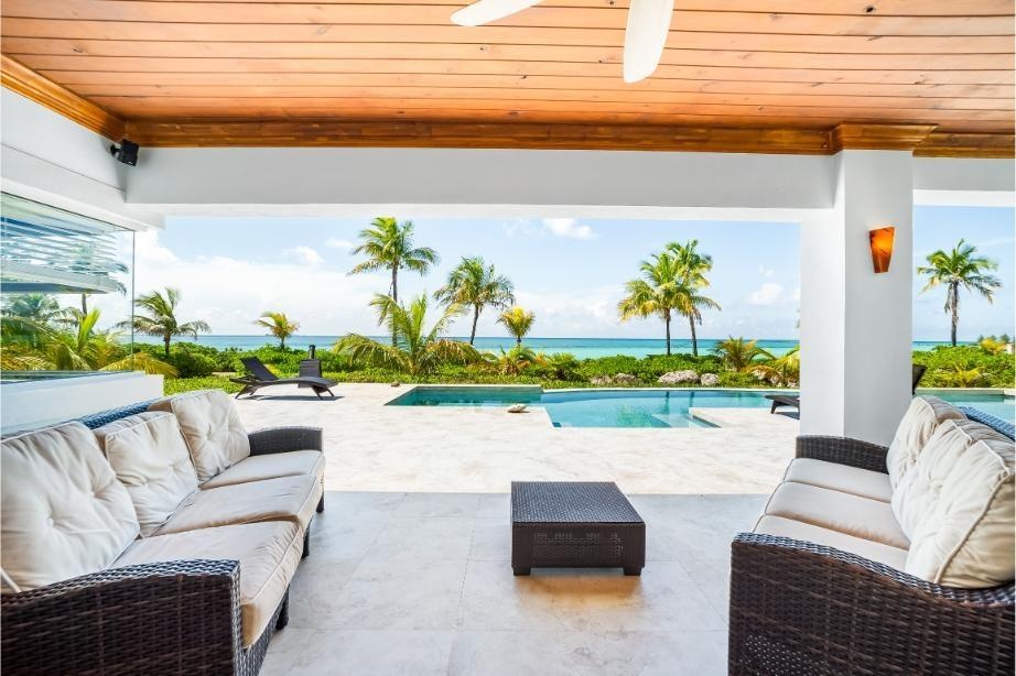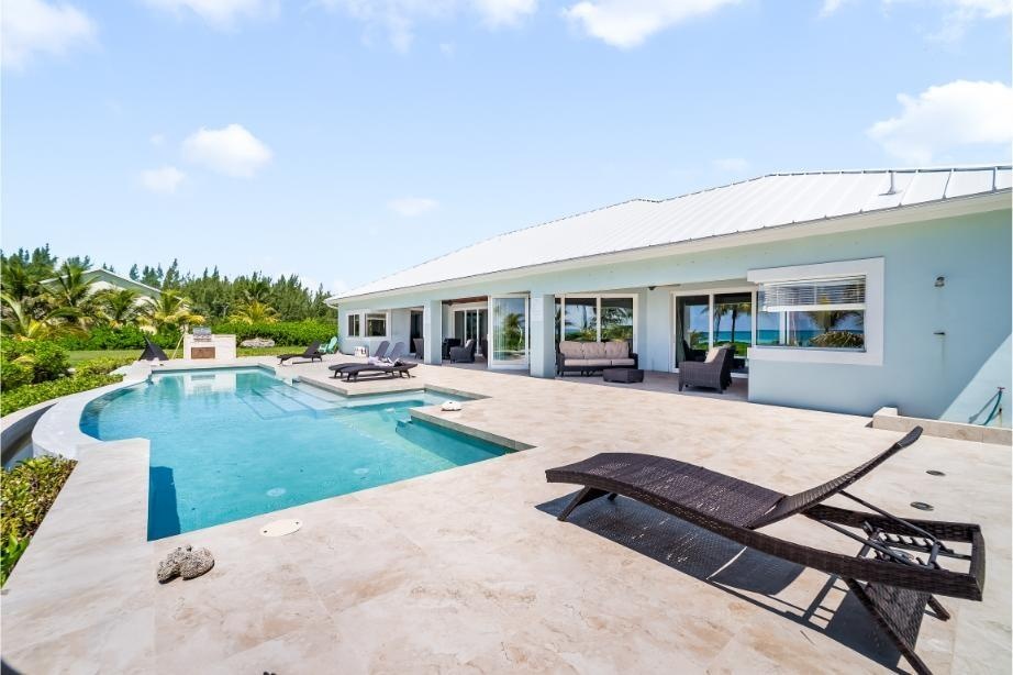 GoldenEye Estates – 5 acres beach and canal frontage on A Rare Dual-Waterfront Offering in Freeport GoldenEye Estates presents an extraordinary opportunity to own two distinctive waterfront residences directly opposite one another, combining the exclusivity of beachfront living with the convenience of a private canal front. Together, GoldenEye Villa and Palm form a private enclave designed for those who value elegance, privacy, and the very best of island living. GoldenEye Villa – Beachfront Grandeur Set on three acres of prime beachfront, GoldenEye Villa spans 3,500 sq. ft. plus expansive terraces, offering refined coastal living at scale. This residence features: Eight bedrooms, including three ensuite suites and a detached guest ensuite for ultimate privacy Multiple sleeping configurations: 2 king suites, 1 queen, 2 twins, and an annex with 2 full-size beds An infinity-edge pool that merges seamlessly with endless ocean views Generous covered terraces designed for outdoor entertaining and relaxation Direct access to powder-white sands and turquoise waters.