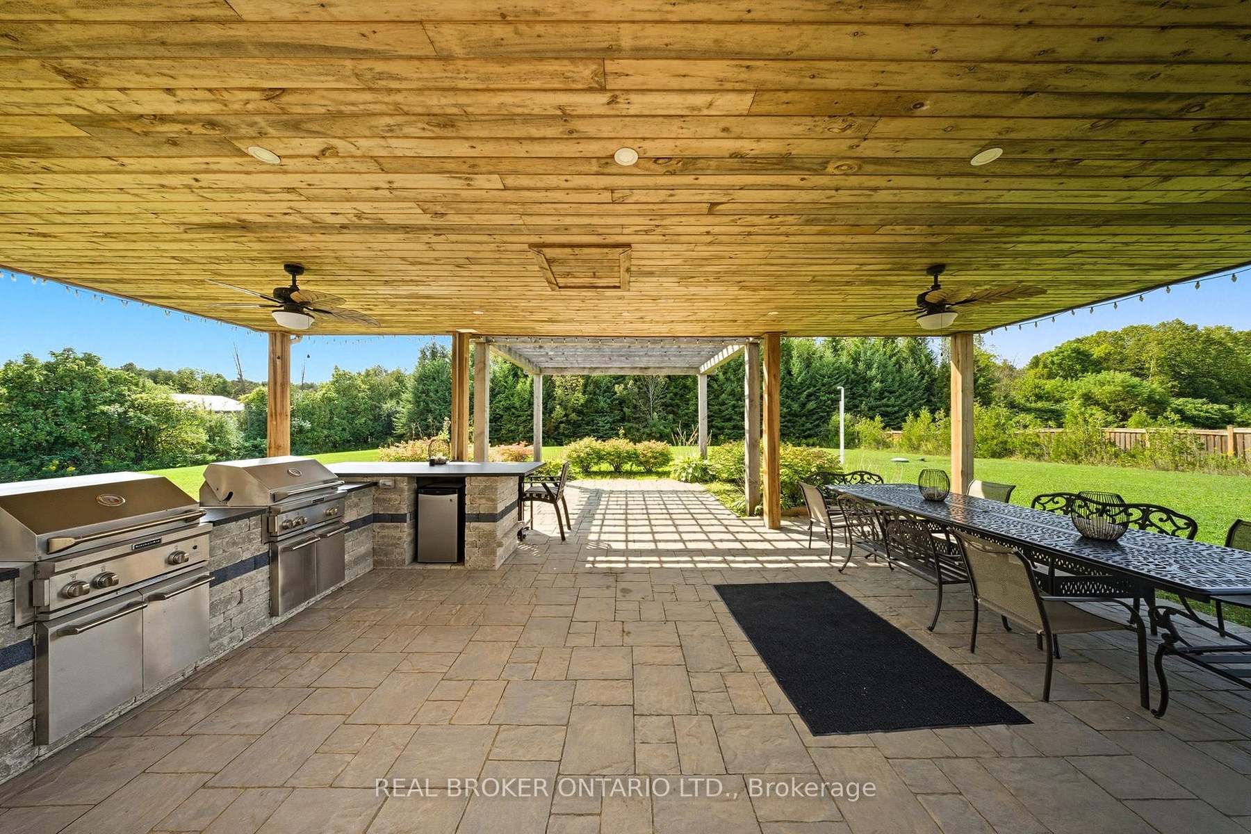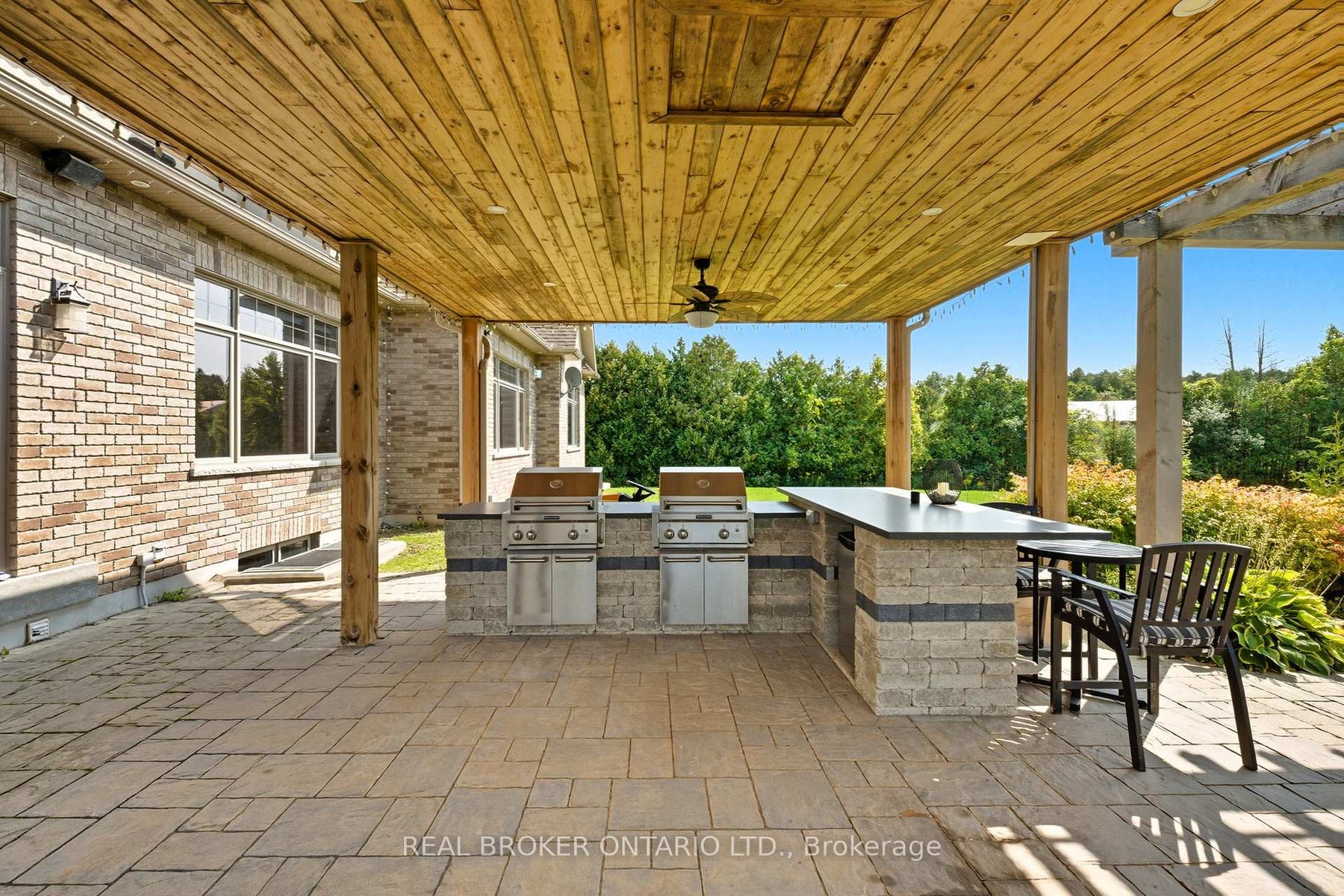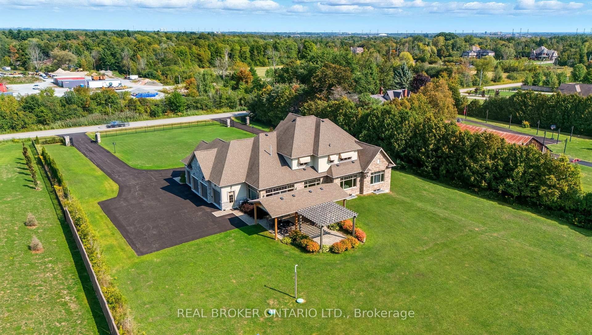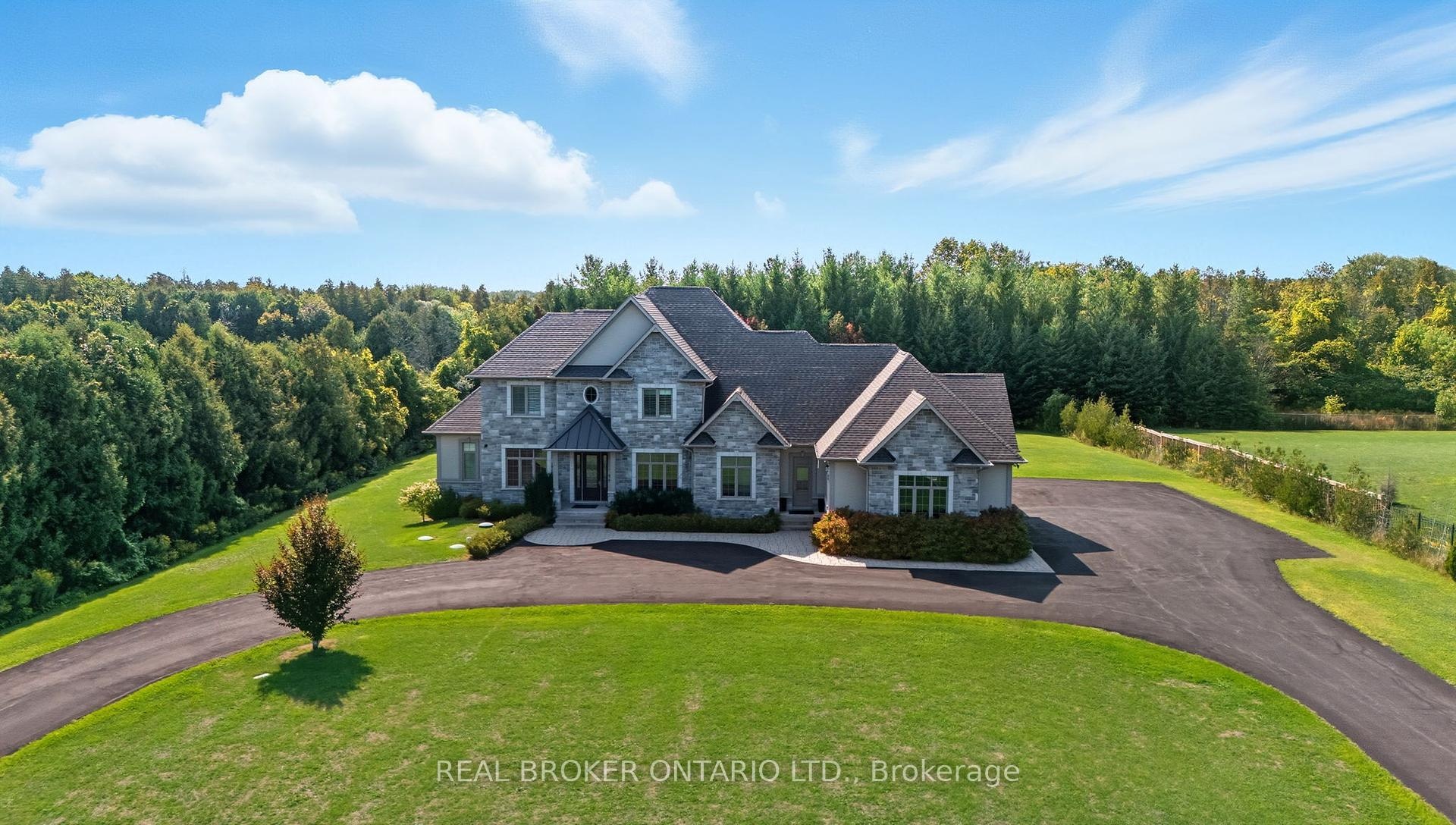 Welcome to estate living in Rural Pickering, where privacy, sophistication, and convenience meet! Tucked away on nearly 2 acres surrounded by ravines and mature trees, this executive retreat offers a rare lifestyle just minutes from the city. From the gated circular drive to the landscaped grounds, every detail speaks of refined living. Inside, over 5,000 sq ft unfolds with a seamless blend of elegance and comfort: a grand main-floor primary suite with spa-inspired ensuite, a chefs kitchen with granite counters, premium appliances, walk-in pantry and breakfast nook, plus formal dining and living rooms accented with custom millwork and soaring ceilings! Designed for both everyday living and unforgettable entertaining, the home features a four-season sunroom with heated floors, a custom theatre, built-in surround sound, and a finished basement with recreation and games rooms. Outdoors, evenings come alive under the pergola with built-in BBQs and oven - the perfect setting for gatherings that linger into the night. Practical luxury completes the experience with a heated 4-car garage, integrated security with cameras, reverse osmosis water system, and countless smart upgrades throughout! More than a home, this is a private retreat, a gathering place, and a statement of lifestyle. Welcome to estate living in Pickering!