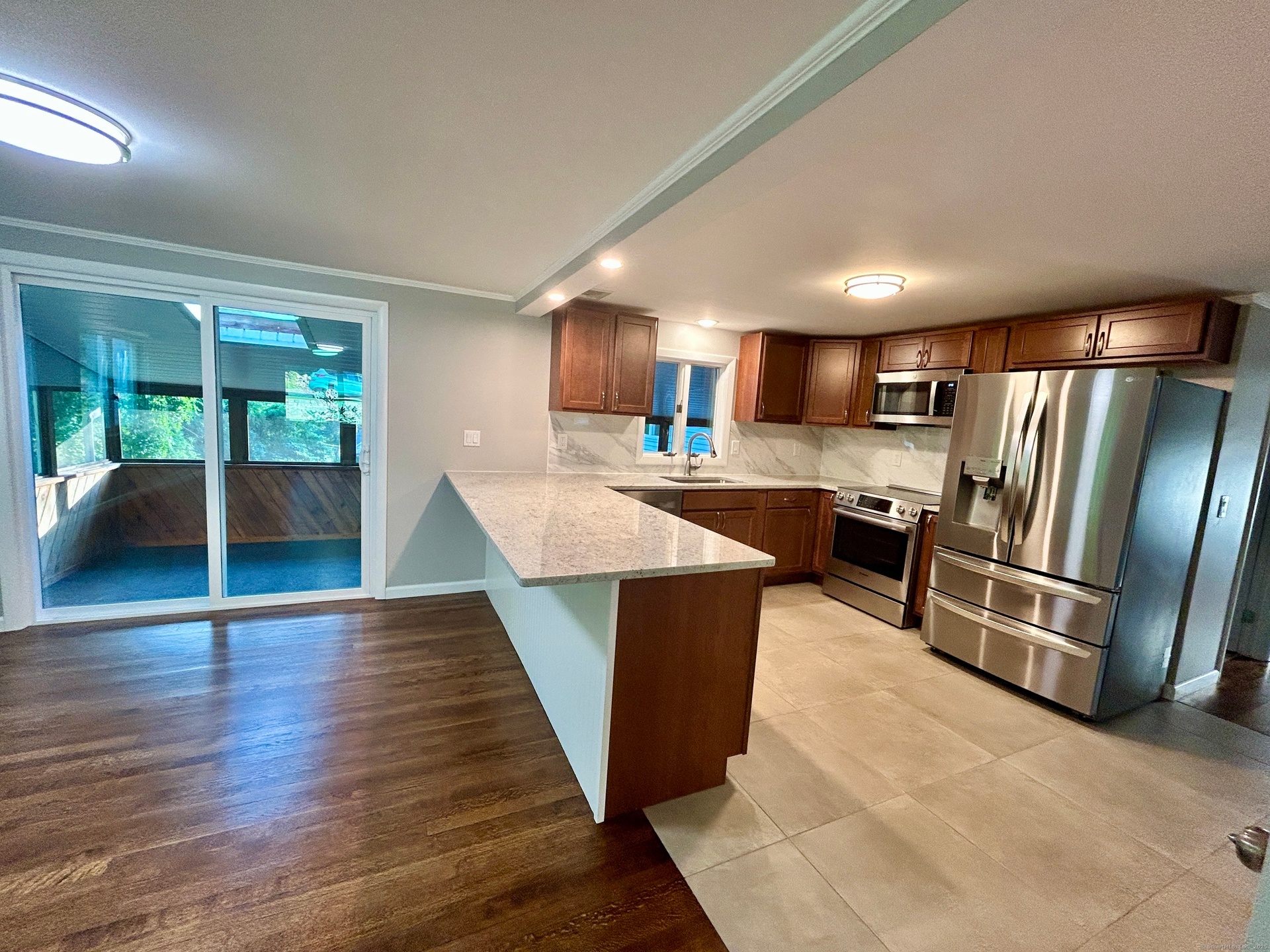 Lake side living ! Welcome to this beautifully remodeled ranch style home with in law or income potential complete with a separate entrance and ample storage space !