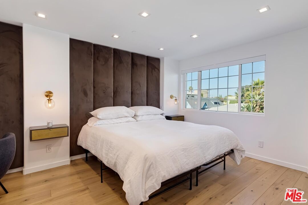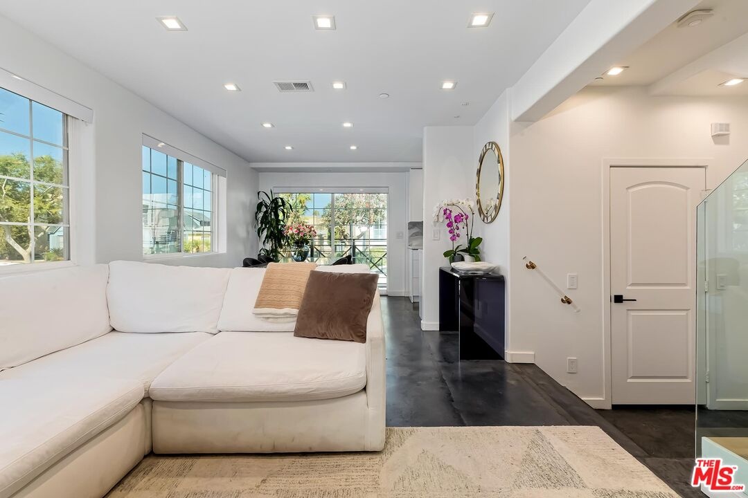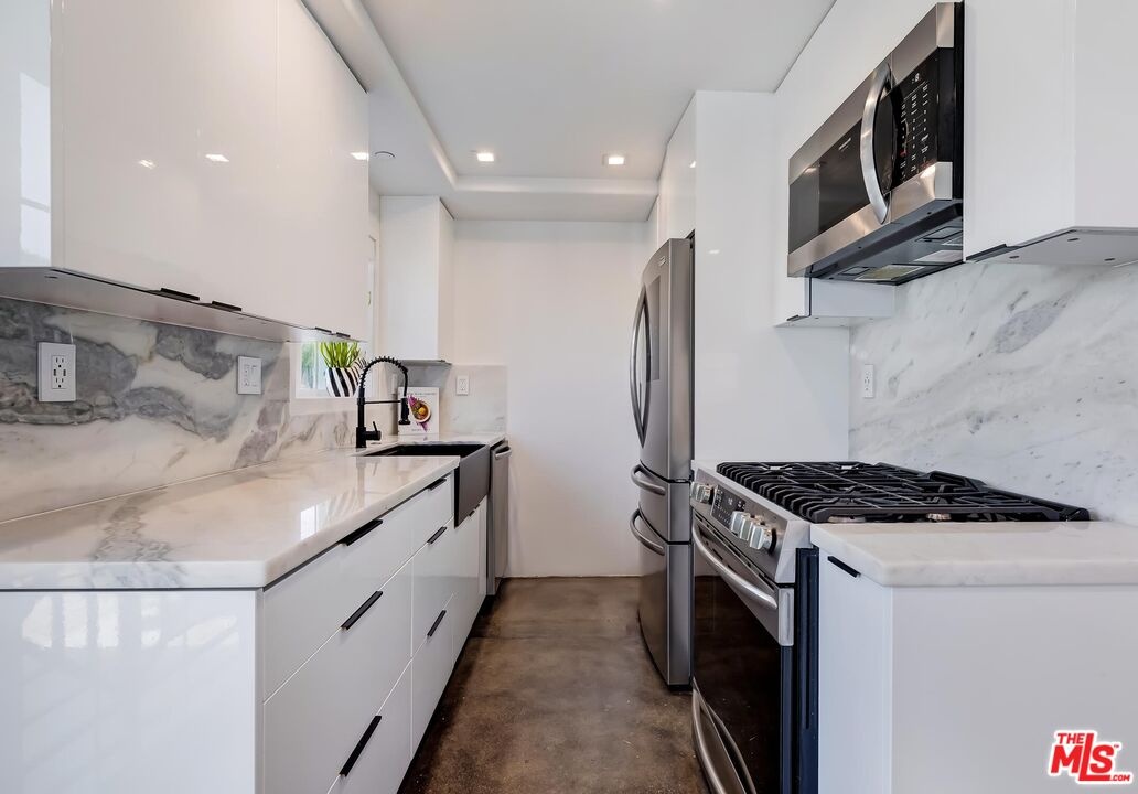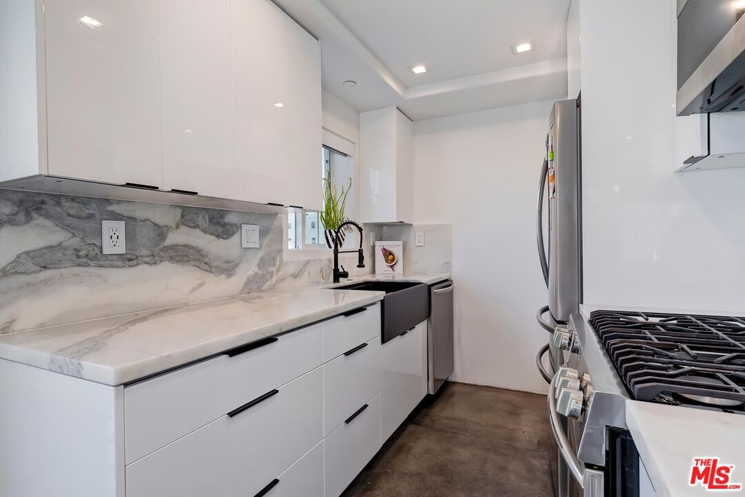 Stunning completely redone condo, is move-in ready after being completed with high-end modern finishes. This 3-level front facing condo features 3 bedrooms with oversized closets, 4 bathrooms, and a custom laundry room with full sized side by side washer & dryer. The high ceiling entry way staircase was beautifully redone with modern touches, glass panes, and gold finishes and leads into the open living and dining room. Large windows throughout allow for ample light and bright rooms. The gourmet kitchen features marble counters, a gas range and oven, stainless steel appliances and chic white cabinets with black accents. There are bathrooms on every level, beautiful view of city lights from top floor rooms, and two individual parking spaces in the subterranean garage. No detail was overlooked in this stunning modern condo centrally located to shopping and dining by The Grove.