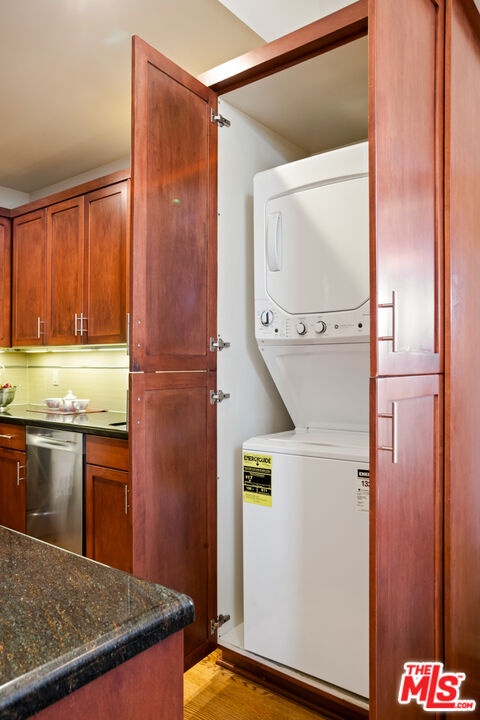 Experience elevated living in your top-floor 2 level penthouse condo, offering the desired blend of space, light, and modern design. Soaring ceilings and oversized windows flood the open-concept living space with natural light and a large patio balcony, while 2 levels provide distinct areas for relaxing, entertaining, and working from home.The sleek galley kitchen features stainless steel appliances, including new dishwasher and fridge, ample cabinetry, convenient stackable laundry and a versatile flex-space counter ideal for folding laundry or easy serving for entertaining. The dedicated private lower level primary suite, with a walk-in closet, en-suite bathroom, and sliding door access to an expansive private balcony creating a true retreat within the home.The guest bedroom with sliding doors connects directly to the main level patio balcony and the full guest bathroom with tub/shower provides convenience for guests. Highlights include new HVAC and only 1 shared wall for enhanced privacy, 2 generously sized side-by-side parking spaces and private inside and garage storage.The building underwent a full renovation in 2008 and offers a secure, new video call system, modernized fire alarm, newer siliconed resurfaced roof, a modern lobby, and wide, welcoming hallways all contributing to a quiet, well-maintained, and professionally managed community.This penthouse delivers on value, privacy, sophistication, and is located close to shopping, grocery, and restaurants. Welcome to your next level.