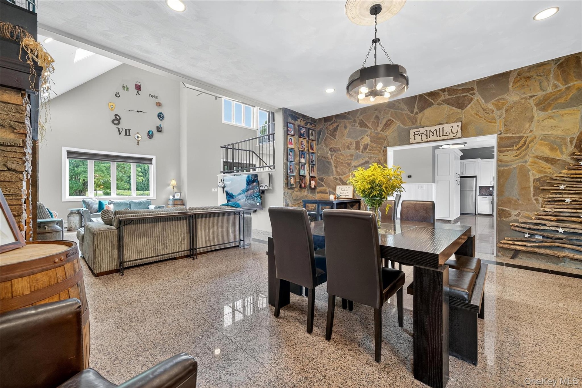 - Dining room with recessed lighting, a dry bar, and baseboard heating
