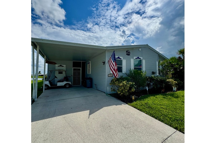 This lovely triple wide 2 bedroom 2 bath home is in the desirable 55 Spanish Lakes Fairways community.