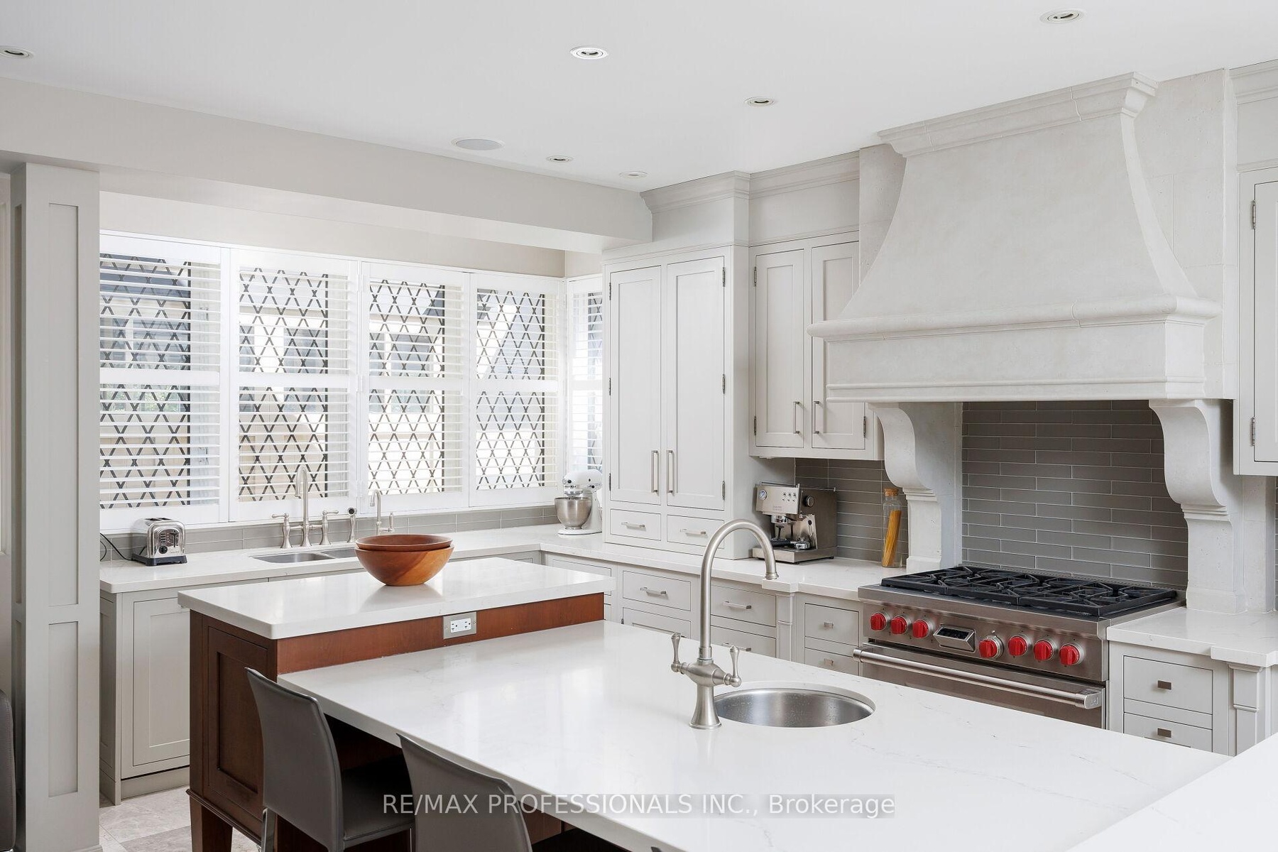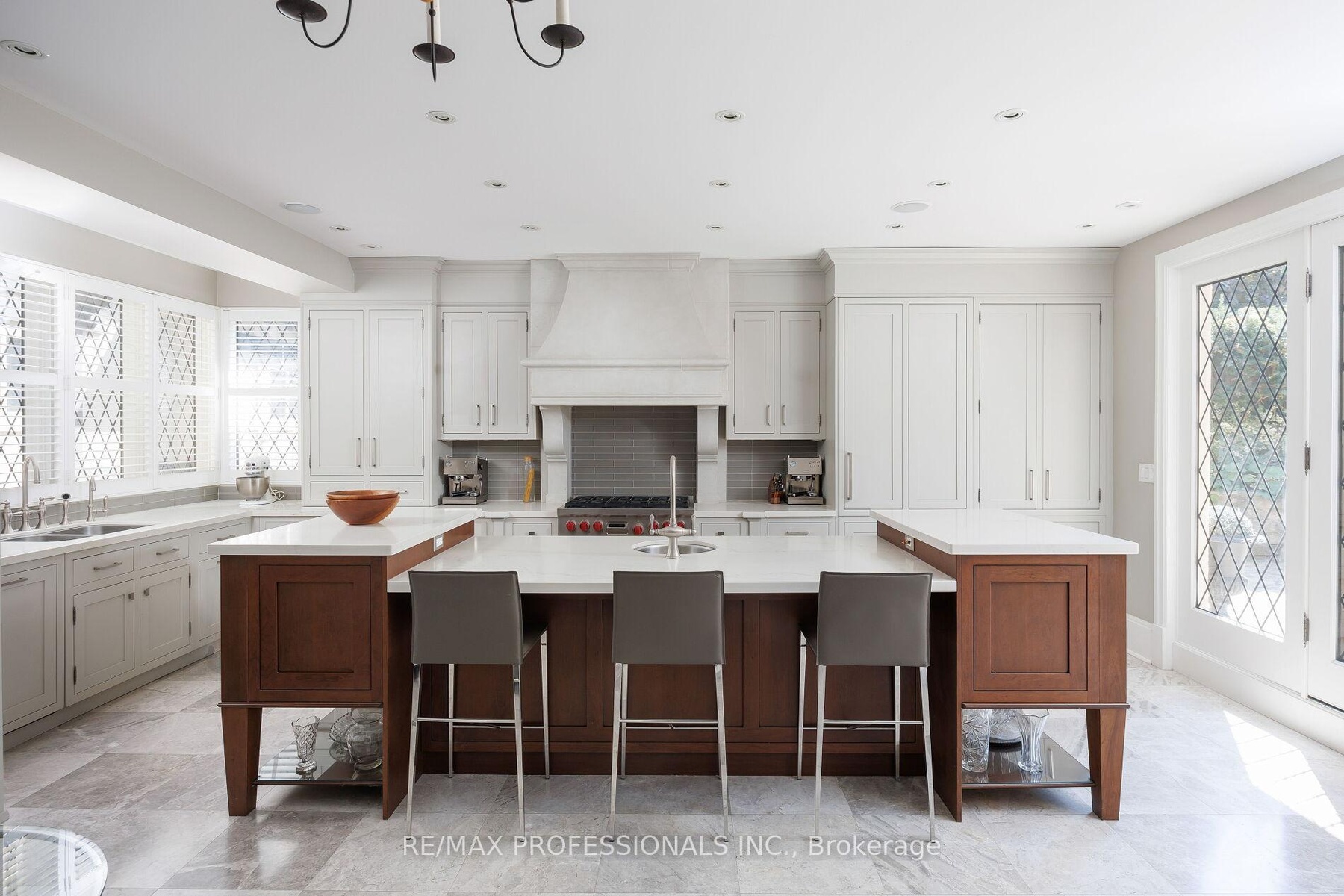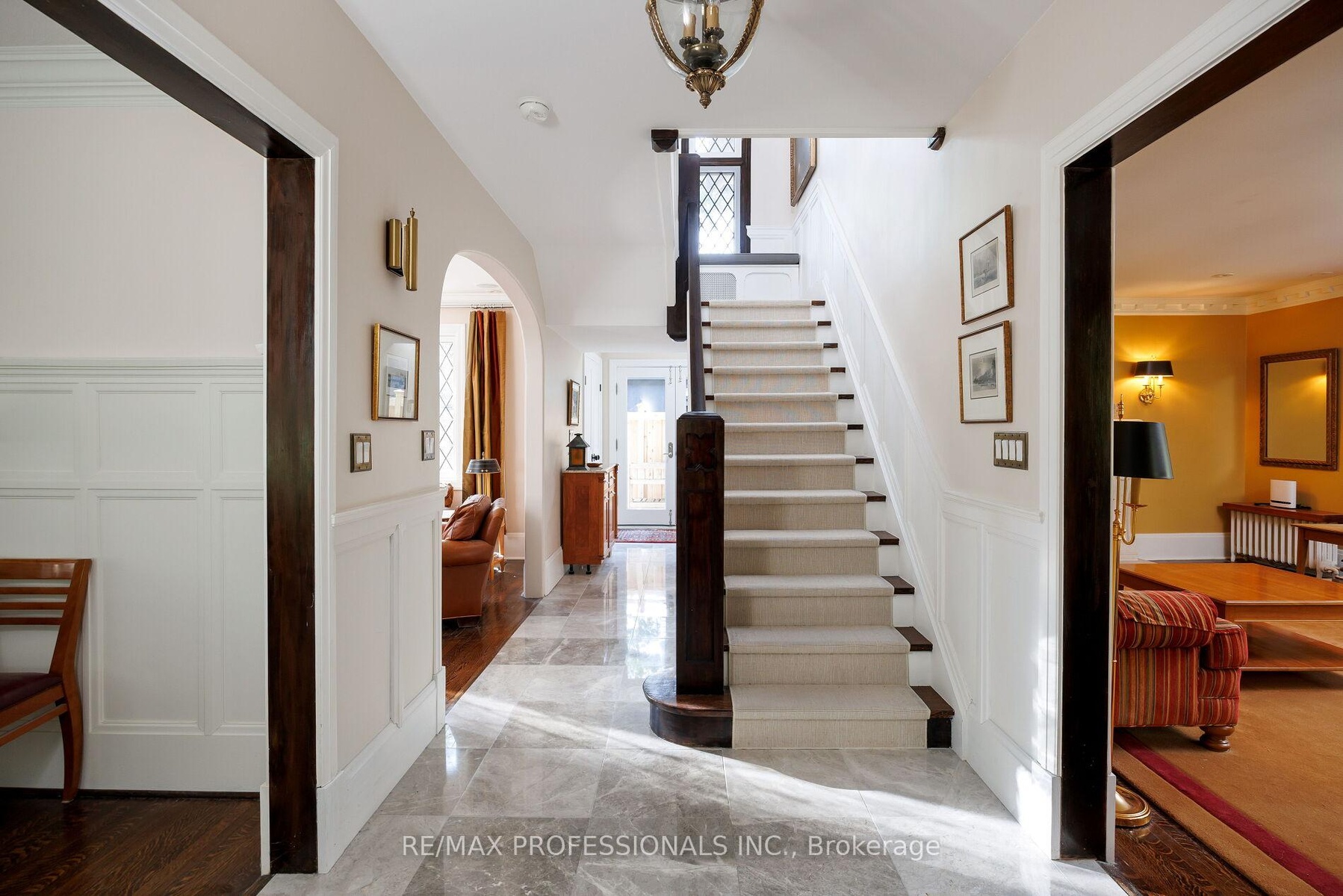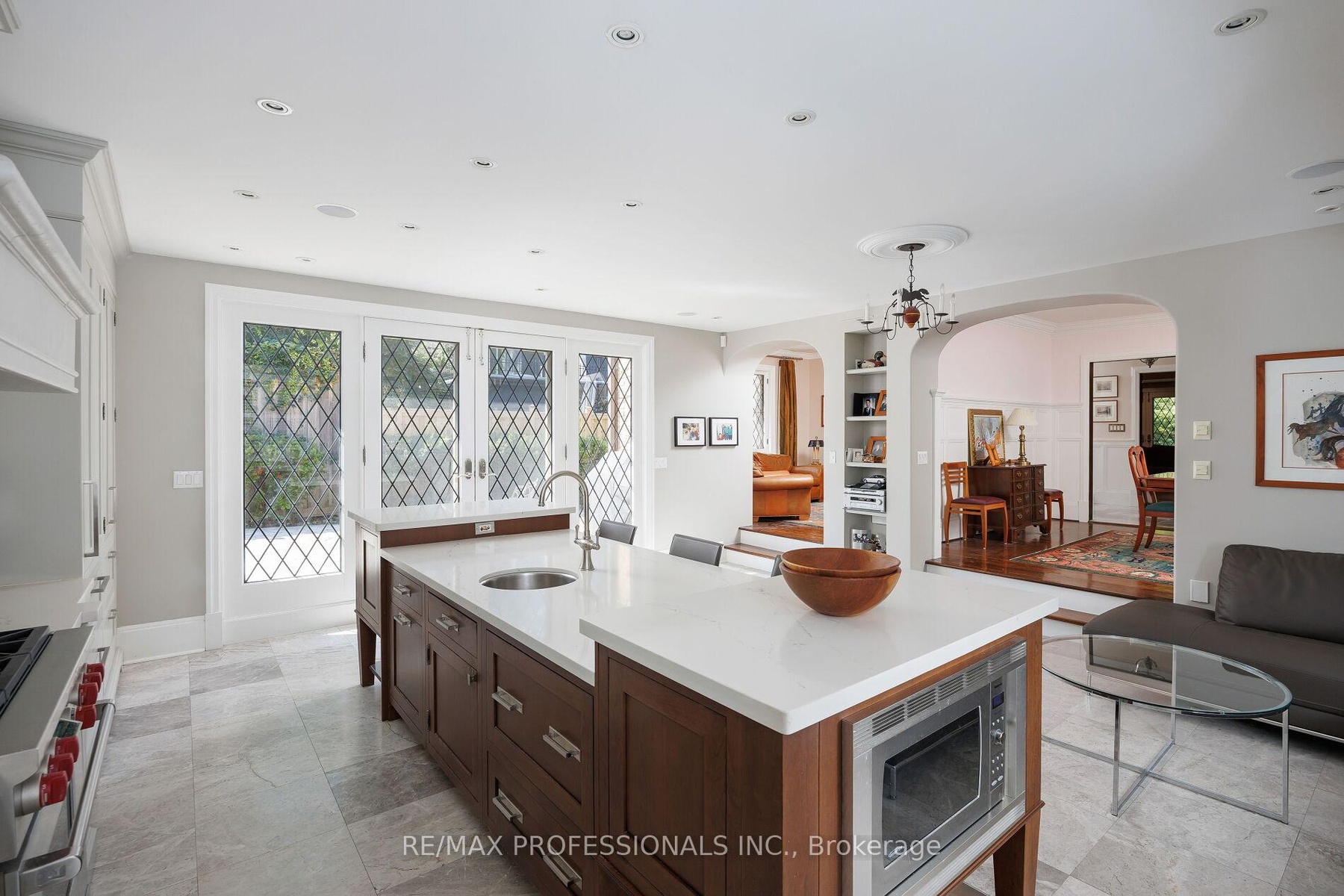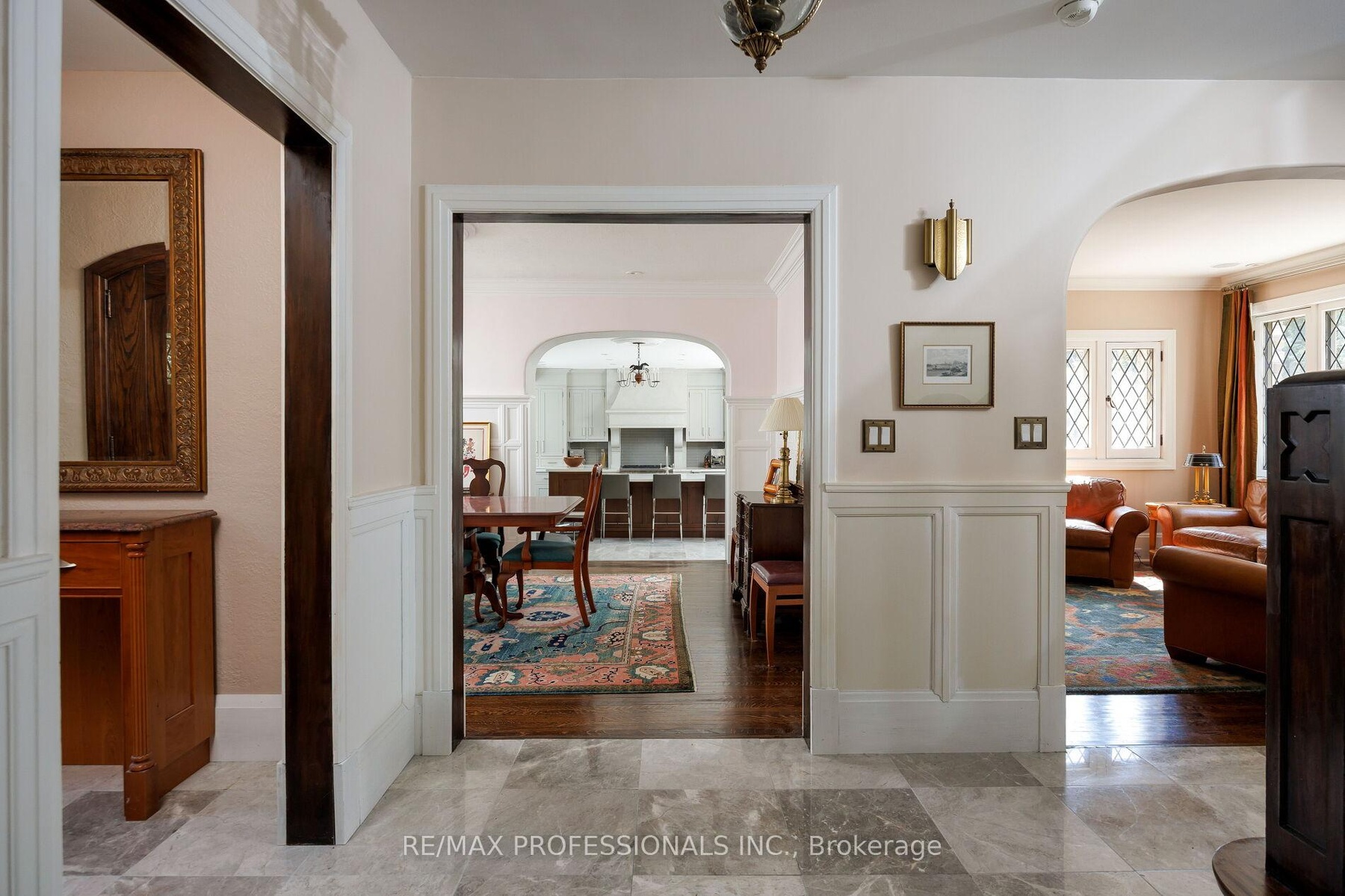Magnificent R. Home Smith Tudor set on an elevated lot across from the Humber River Valley. Absolutely stunning architectural features, accompanied by gorgeous landscaping, an elegant foyer flanked by gracious principal rooms. The high-end, innovative, and luxurious Downsview designer kitchen opens to a courtyard patio, with a step up to a separate family room & formal dining room. The primary bedroom features a five-piece en-suite bath & multiple closets. Three additional bedrooms + two baths complete the charming second floor. Exquisite 3-car garage. Diamond-patterned leaded glass windows, tiger oak hardwood flooring & heated tile floors. #16 Kingsway Crescent remains an accurate aspirational address, perched at the intersection of the Kingsway's two most prestigious streets. Thoughtfully renovated to protect the building's vintage character, it offers a commanding presence, making it an excellent investment.
