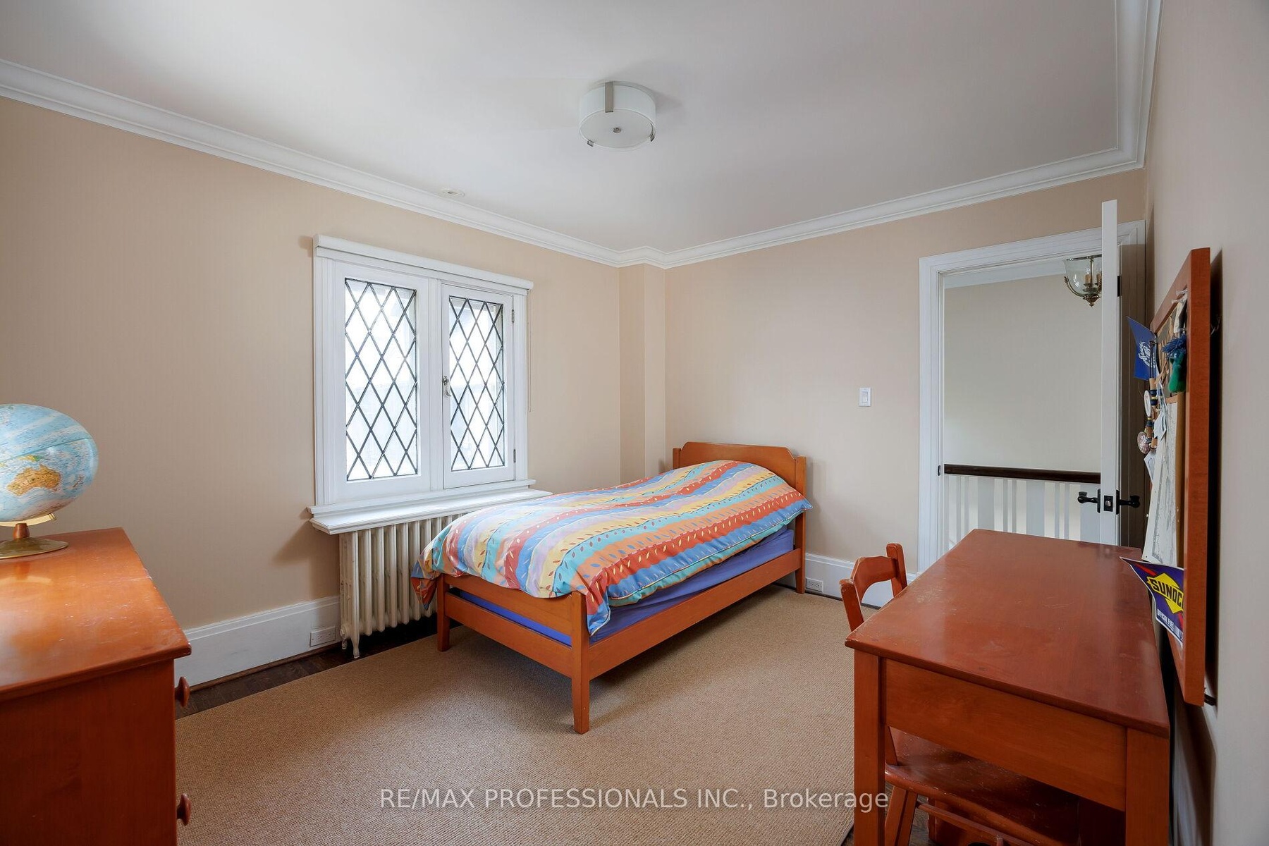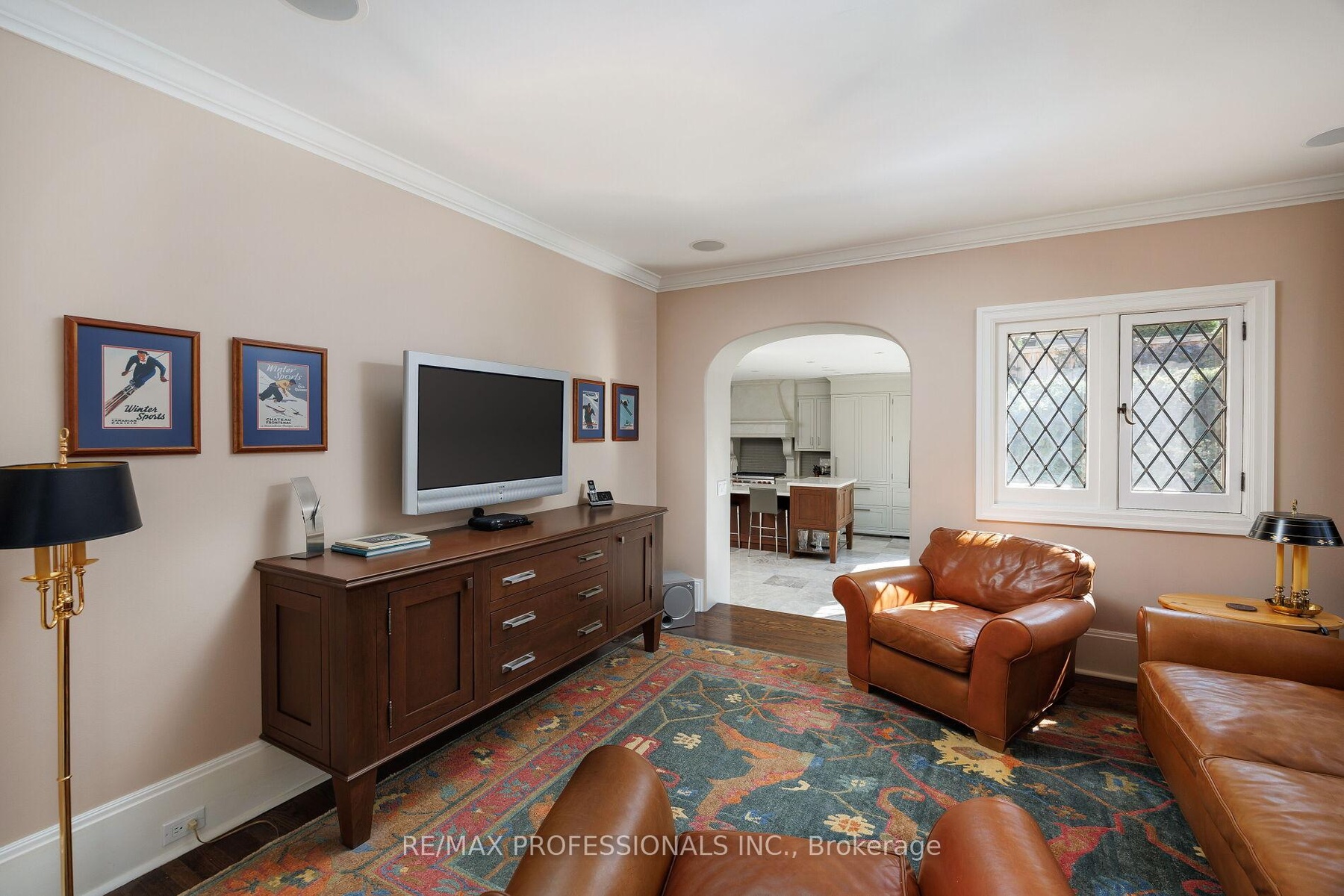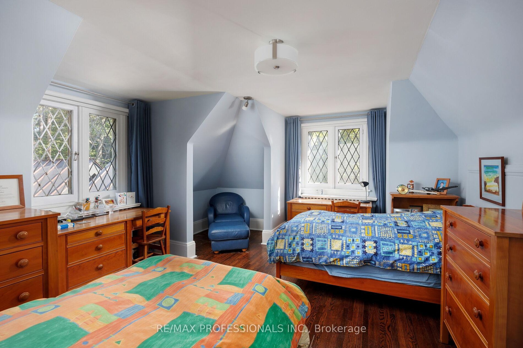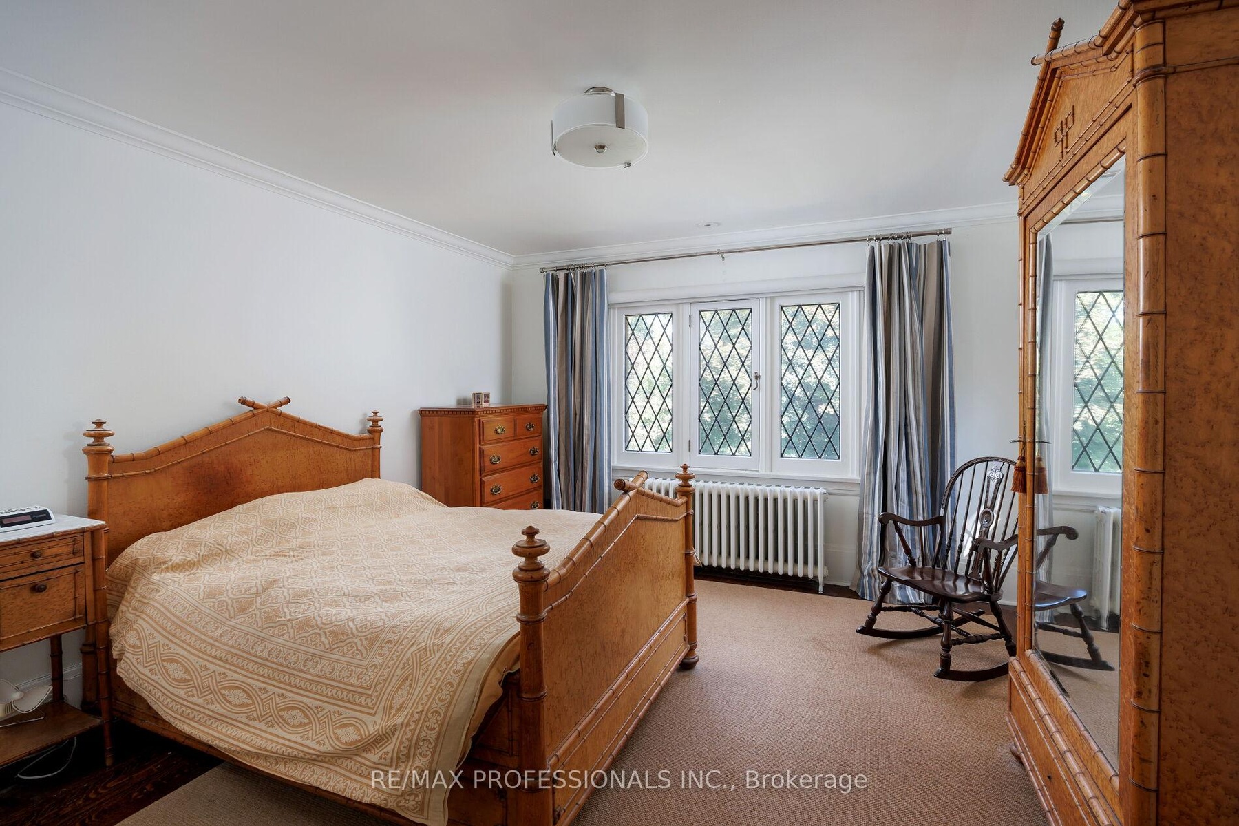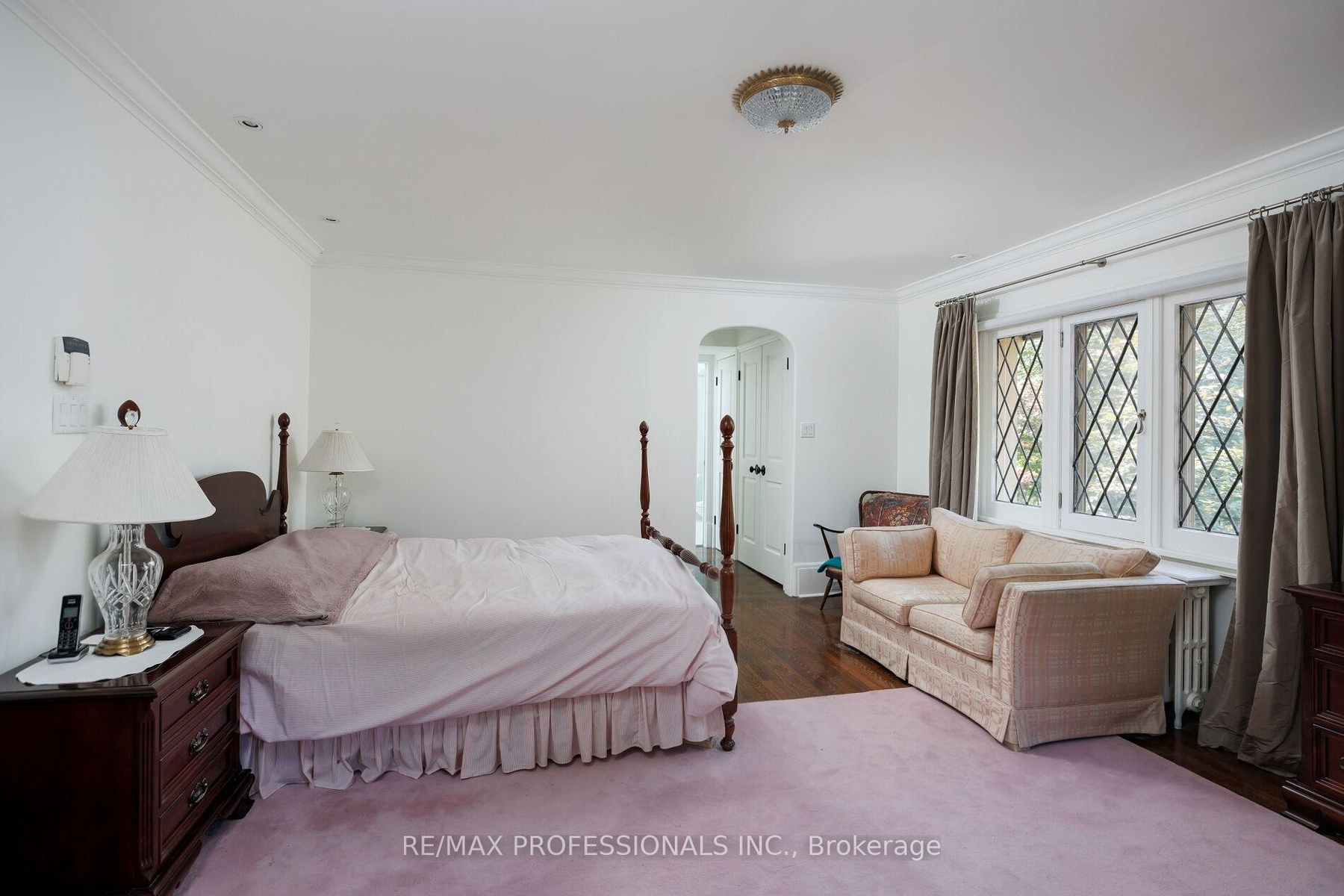Magnificent R. Home Smith Tudor set on an elevated lot across from the Humber River Valley. Absolutely stunning architectural features, accompanied by gorgeous landscaping, an elegant foyer flanked by gracious principal rooms. The high-end, innovative, and luxurious Downsview designer kitchen opens to a courtyard patio, with a step up to a separate family room & formal dining room. The primary bedroom features a five-piece en-suite bath & multiple closets. Three additional bedrooms + two baths complete the charming second floor. Exquisite 3-car garage. Diamond-patterned leaded glass windows, tiger oak hardwood flooring & heated tile floors. #16 Kingsway Crescent remains an accurate aspirational address, perched at the intersection of the Kingsway's two most prestigious streets. Thoughtfully renovated to protect the building's vintage character, it offers a commanding presence, making it an excellent investment.