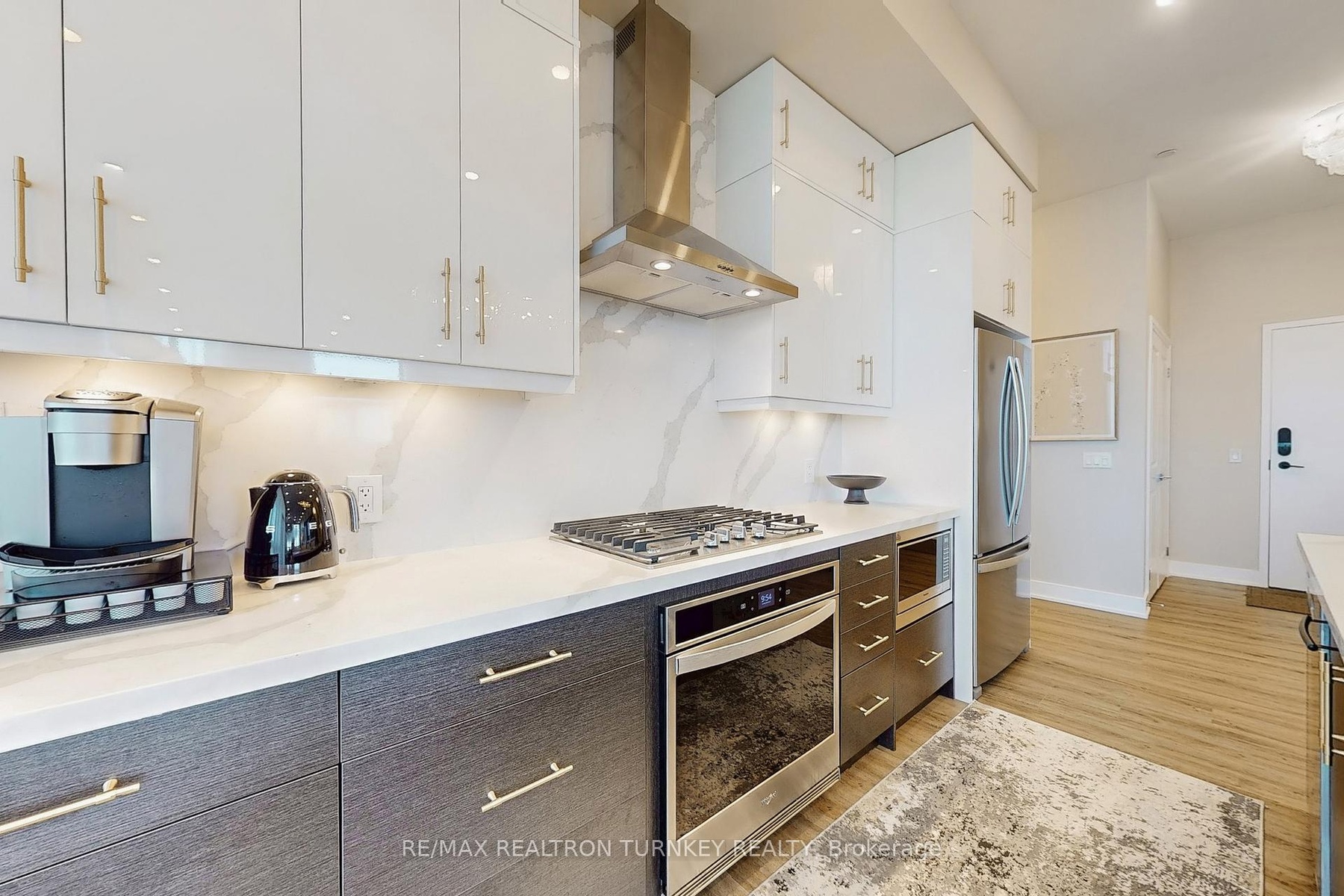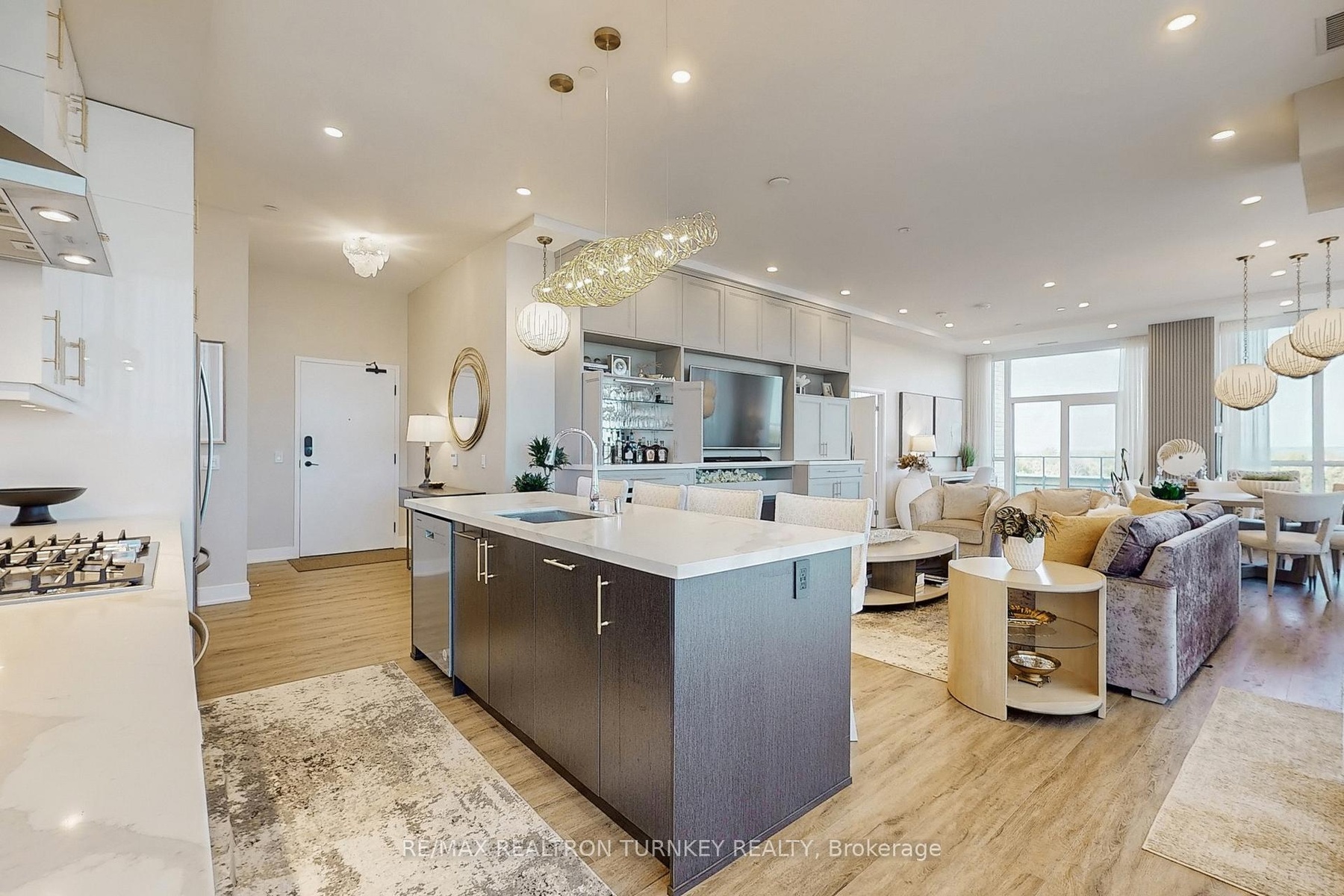 Spectacular Luxury Suite in the prestigious boutique midrise Pemberton building at 9th & Main in the heart of Stouffville, offering urban convenience & panoramic views in a tranquil setting. This Expansive CORNER UNIT is infused w contemporary elegance & custom upgrades and elevated by professional interior design. Featuring 1700 sf of thoughtfully designed living space w $$ Thousands invested in extensive Custom Built-ins and Luxury Finishes! Originally a 3 bdrm/3 bathrm model converted to 2 & 2 w upsized dining room & convenient W/I Pantry beside Spacious Ensuite Laundry Room. 10' SMOOTH CEILINGS w Bright Flr to Ceiling Windows overlook Stouffville's picturesque landscapes. Enjoy 375 SF of OUTDOOR LIVING SPACE with 3 WALK-OUTS to 2 North & West-facing Balconies! Highlights incl Stunning B/I Custom cabinetry: Wall Unit w Fireplace & bar, wine rack/hutch; 7" Engineered Plank Flooring thruout, Gorgeous Chefs Kitchen w Ctr Island & Brkfst Bar, Quartz Counters, Backsplash & Full-sized Gas-fired SS Appliances; Upgraded Lighting & 22 Pot Lights on Dimmer; Elegant Primary Suite w W/I Closet, 2 Spa Inspired Bathrooms w Upgraded Fixtures & Faucets thruout; Free Standing Tub w Floor Mounted Tub Filler in Primary Ensuite, Custom Organized Closets, Gas BBQ hookup on Balcony & so MUCH MORE! See MLS Attach. Complete w 2 Underground Parking close together w easy Access to 1 Owned Locker! EV charging upgrade avail. **2 Dogs/Cats Allowed. Bldg Amenities Incl: 24 hr Concierge, 2 Guest Suites, Fitness Ctr, Multipurpose Party Rm w Terrace, Media Lounge, Library w Fireplace, Boardrm Workspace, Pet Spa, Golf Sim, Visitor Parking+More! *Wi-Fi, Water/Gas/CAC INCLUDED in Maint fee. Steps to Stouffville GO Stn, Highways 404/407, grocery, shops, parks, & restaurants. Surrounded by conservation & green space w easy access to Main St amenities, Walking Trails, Golf, Markham Stouffville Hospital, Great Schools, Parks & Places of Worship. Experience Upscale living at its finest!