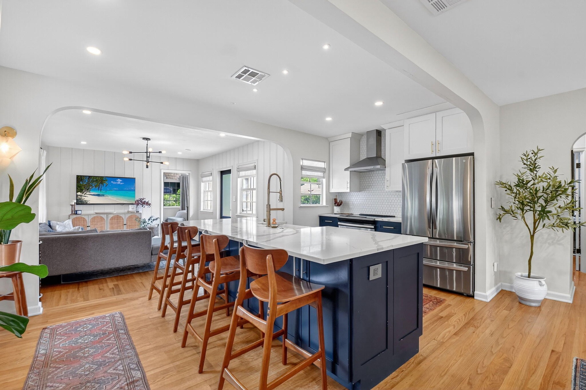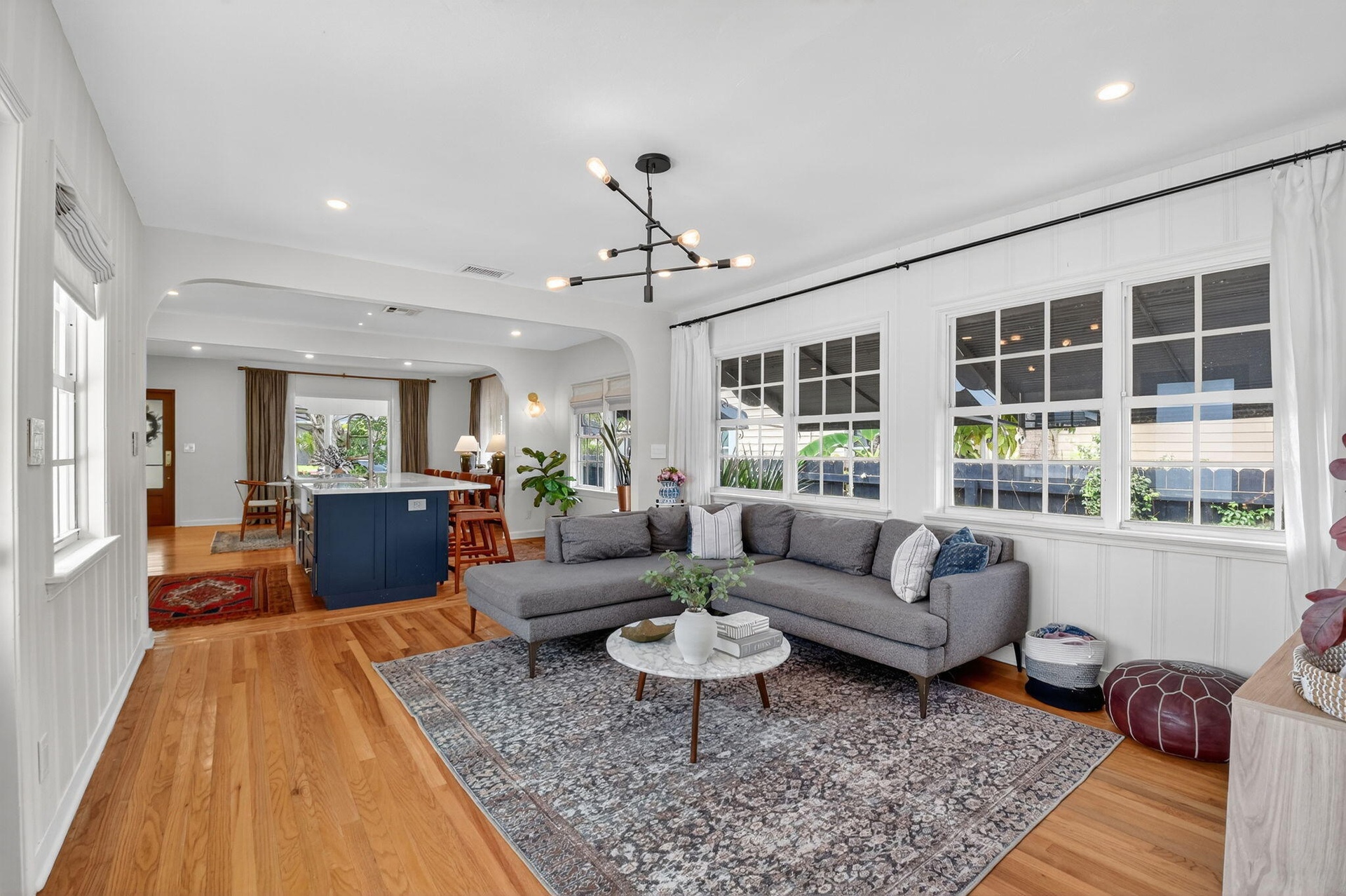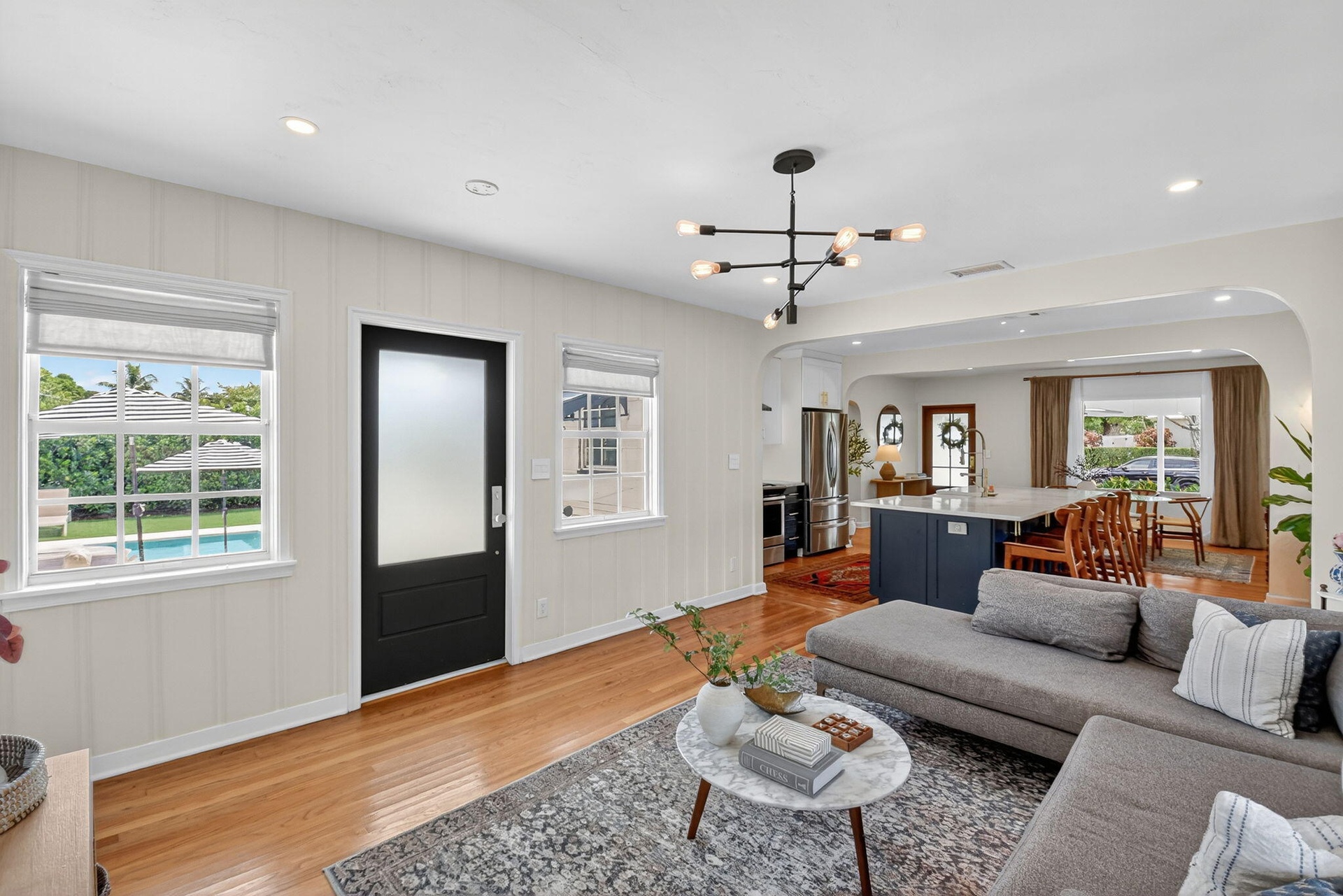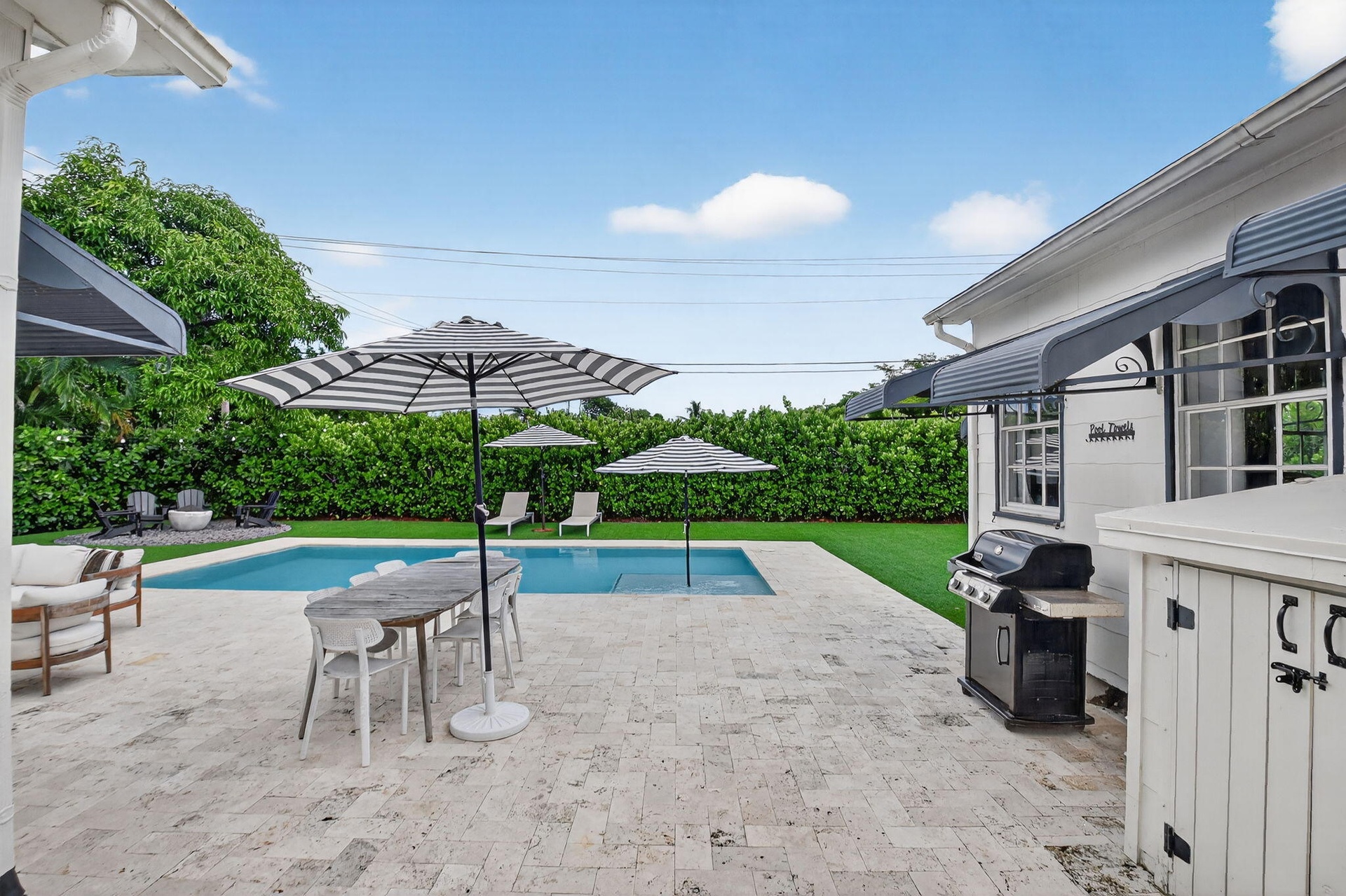 A rare blend of charm, space, and style, this beautifully furnished annual rental is located in one of West Palm Beach's most desirable neighborhoods. Just minutes from downtown but tucked away on a quiet, tree-lined street, the home offers the kind of indoor-outdoor living experience that's nearly impossible to find in the heart of the city. Inside, you'll find a bright and airy floor plan centered around a stunning, fully renovated kitchen. The oversized island, sleek quartz counters, custom cabinetry & high-end finishes make it both functional & visually striking, perfect for everyday living or entertaining. Both bathrooms have been tastefully updated with a clean, modern aesthetic that complements the home's timeless charm. But what truly sets this home apart is the expansive backyard