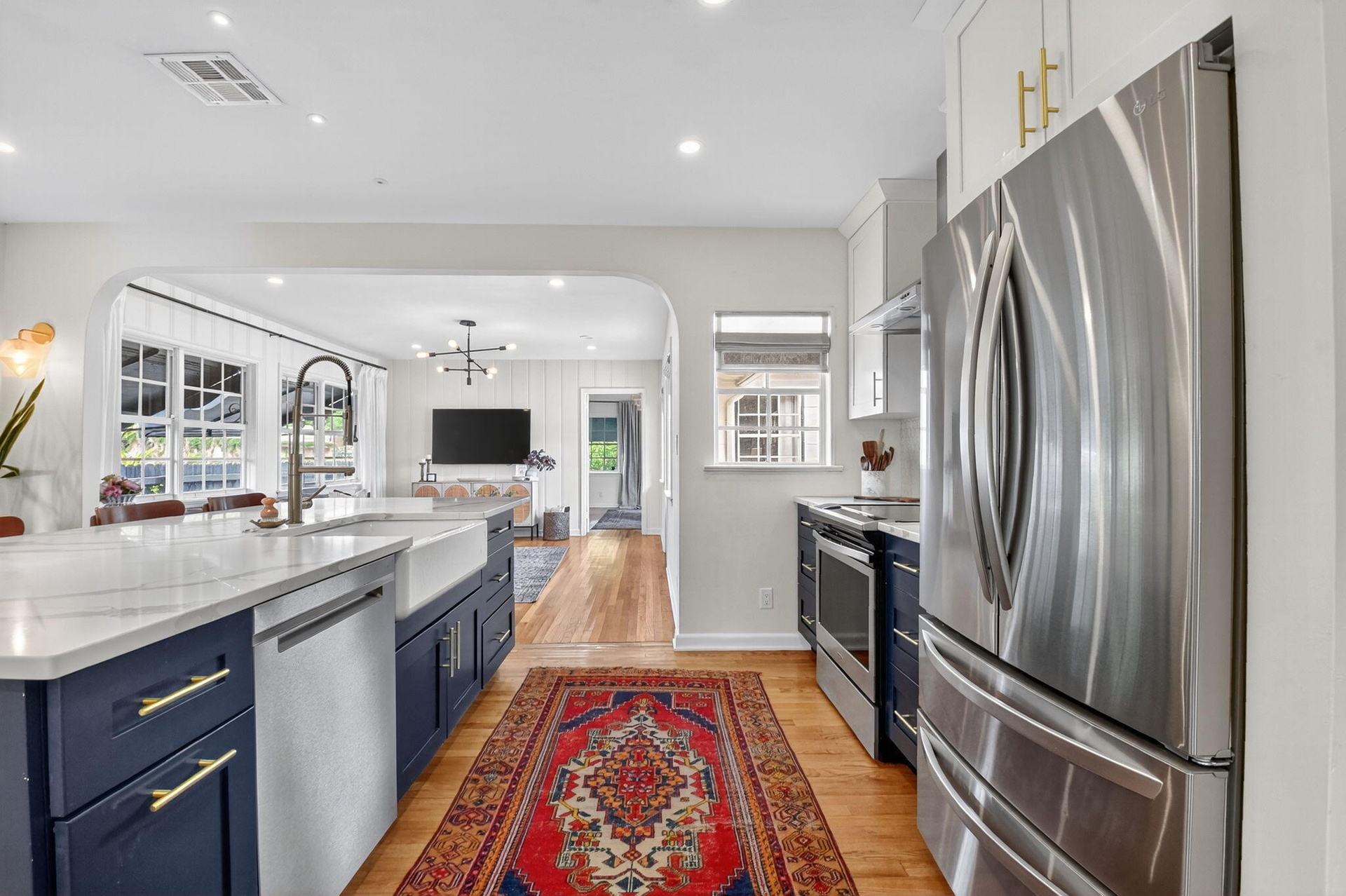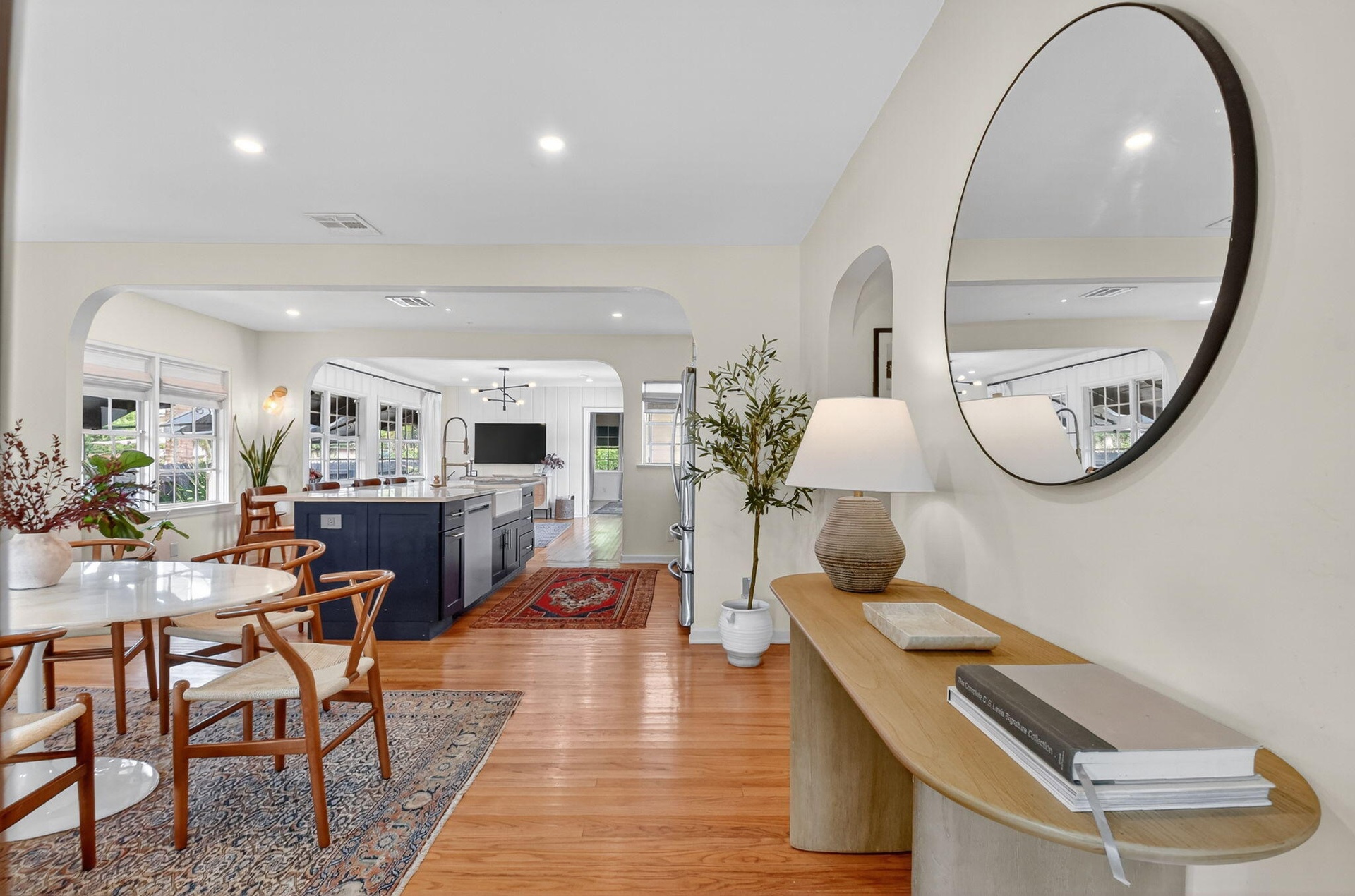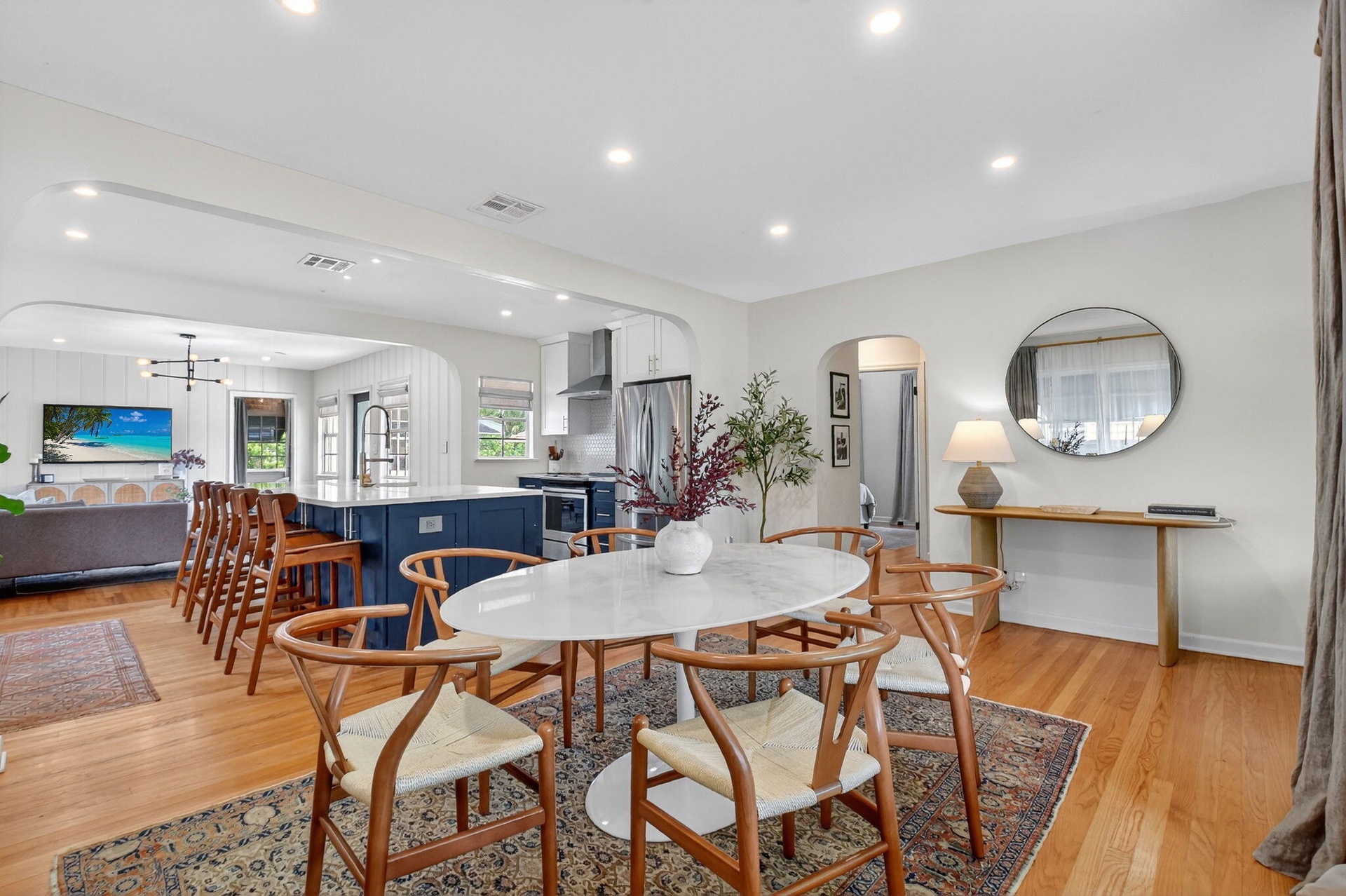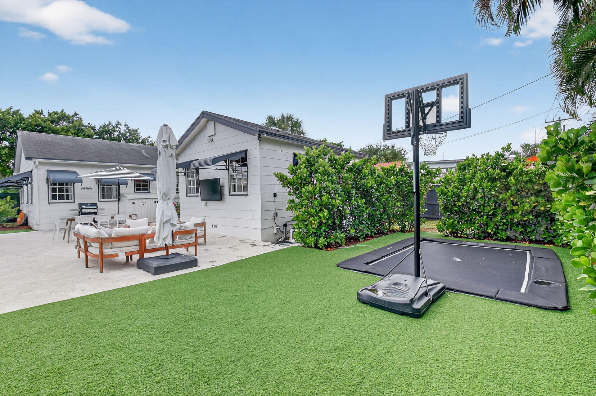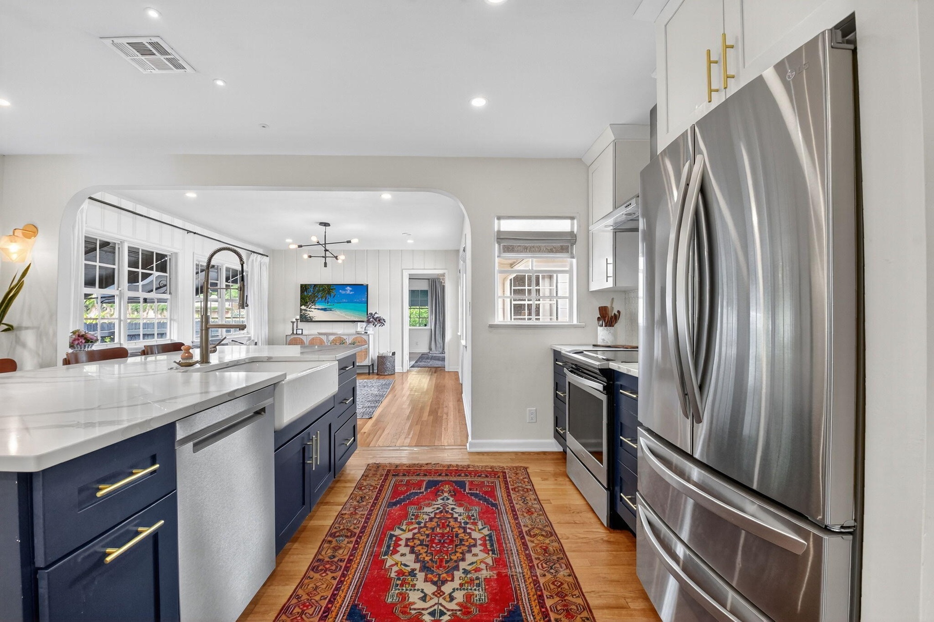 A rare blend of charm, space, and style, this beautifully furnished annual rental is located in one of West Palm Beach's most desirable neighborhoods. Just minutes from downtown but tucked away on a quiet, tree-lined street, the home offers the kind of indoor-outdoor living experience that's nearly impossible to find in the heart of the city. Inside, you'll find a bright and airy floor plan centered around a stunning, fully renovated kitchen. The oversized island, sleek quartz counters, custom cabinetry & high-end finishes make it both functional & visually striking, perfect for everyday living or entertaining. Both bathrooms have been tastefully updated with a clean, modern aesthetic that complements the home's timeless charm. But what truly sets this home apart is the expansive backyard