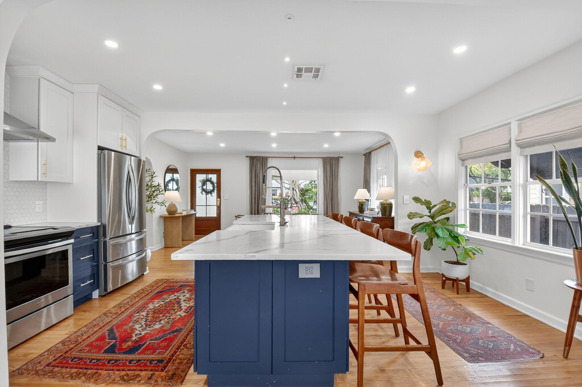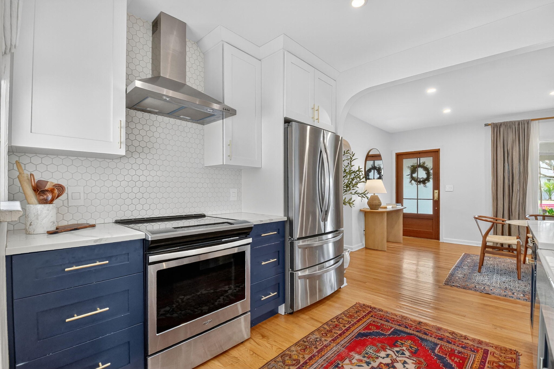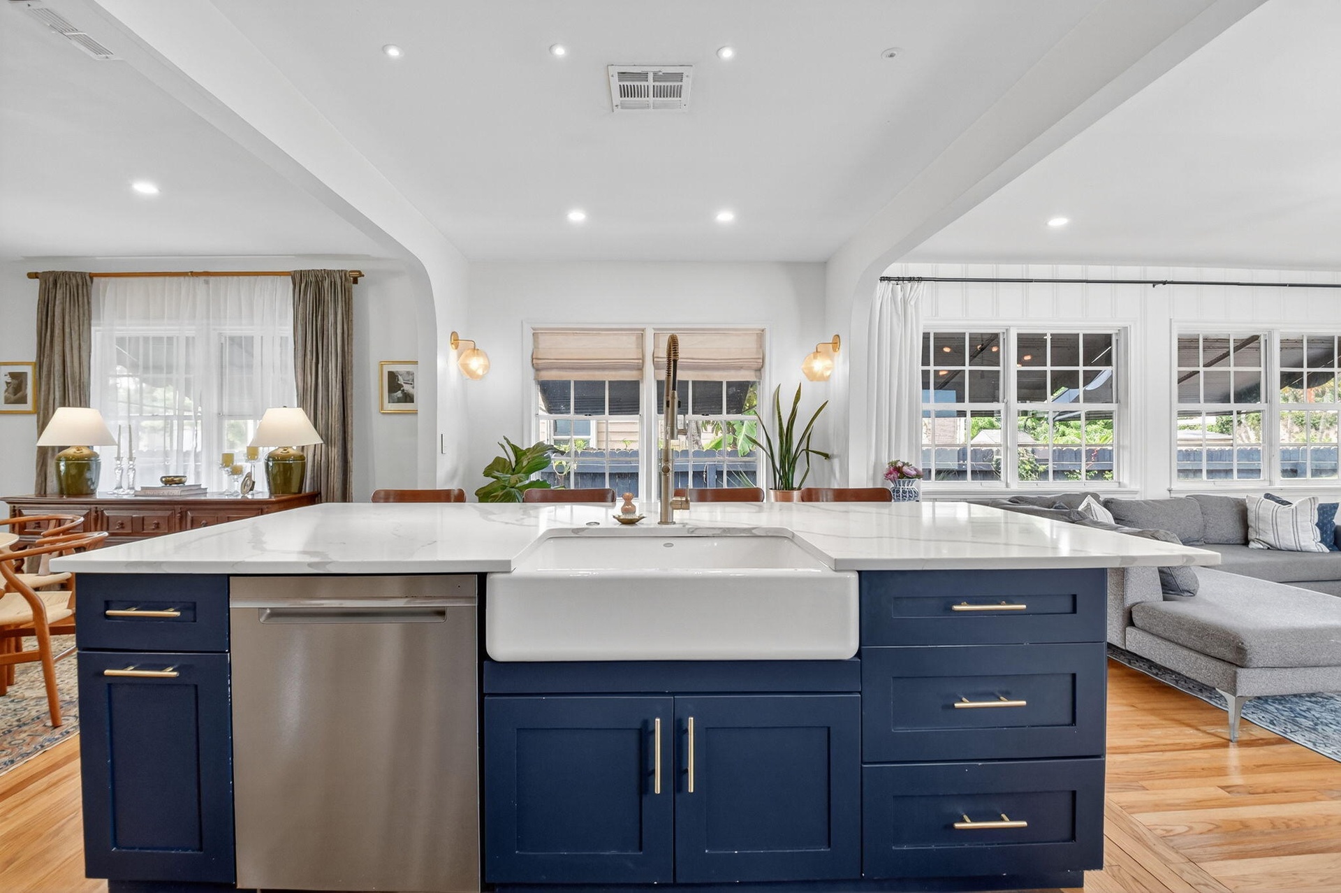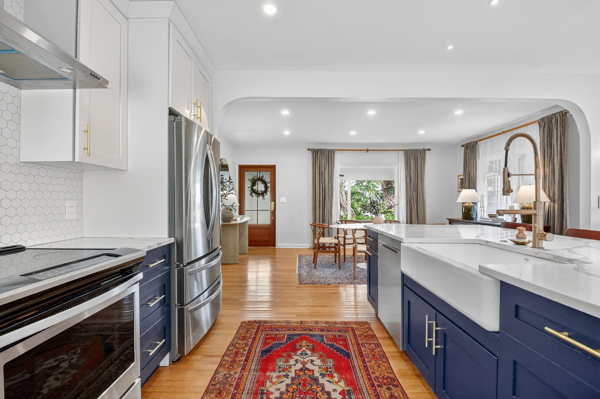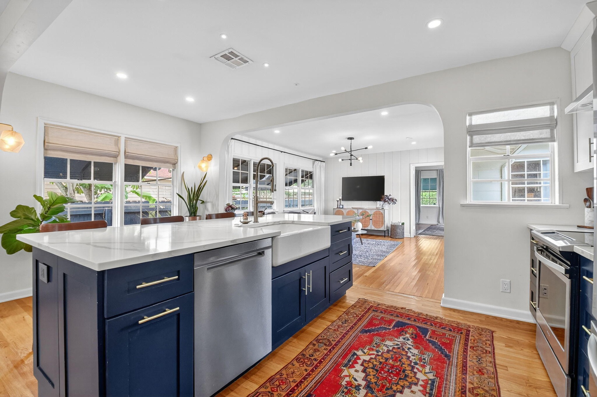 A rare blend of charm, space, and style, this beautifully furnished annual rental is located in one of West Palm Beach's most desirable neighborhoods. Just minutes from downtown but tucked away on a quiet, tree-lined street, the home offers the kind of indoor-outdoor living experience that's nearly impossible to find in the heart of the city. Inside, you'll find a bright and airy floor plan centered around a stunning, fully renovated kitchen. The oversized island, sleek quartz counters, custom cabinetry & high-end finishes make it both functional & visually striking, perfect for everyday living or entertaining. Both bathrooms have been tastefully updated with a clean, modern aesthetic that complements the home's timeless charm. But what truly sets this home apart is the expansive backyard