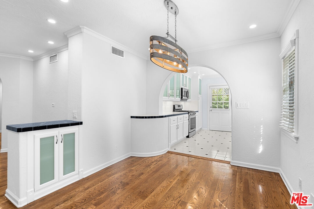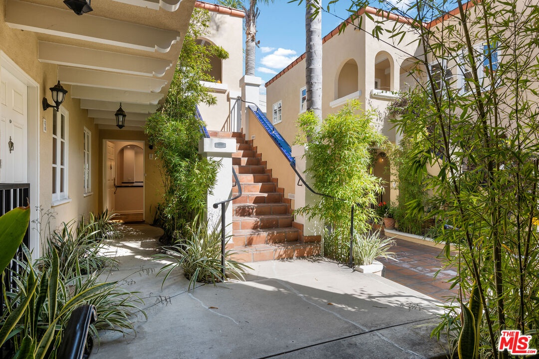Spanish charm with a modern flare! This 3-bedroom, 2-bathroom light & bright lower unit has everything you need + it's steps from the trendy Melrose Place/Melrose Avenue for great shopping, eating & the great farmer's market! Gated entry & lush courtyard leads you to what feels like a home with an open flow to the living room, dining area & kitchen. Enter to the private patio area from the kitchen & primary suite. Hardwood floors in the entertaining areas, LED recess lights, central AC, alarm system, window treatments, custom closets & more (currently light grey carpet in bedrooms NOT the color in pictures)! Gourmet kitchen with stainless steel appliances, stackable in-unit washer/dryer + 2 tandem parking spots (1 inside garage & 1 outside of garage.) French doors in the living room & primary with retractable screens. Community barbecue, fireplace & outdoor dining area in the back of the building. 3-building complex surrounded by tranquil fountains, trees & manicured grass + easy to reach property manager. Building is secure. Truly one-of-a-kind building! Come Check It Out!