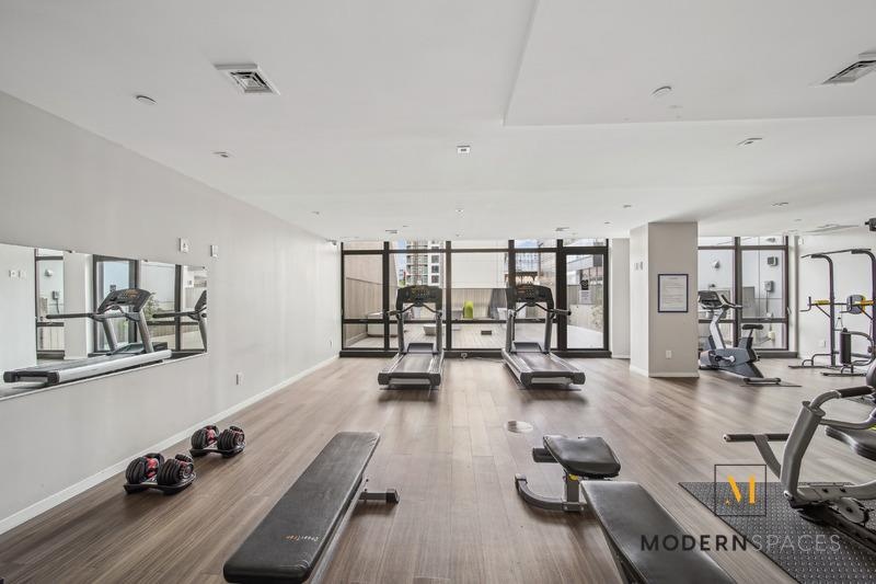 Built in 2018, this boutique condominium offers amenities including a virtual doorman intercom system, a fitness room, and a shared outdoor terrace.
