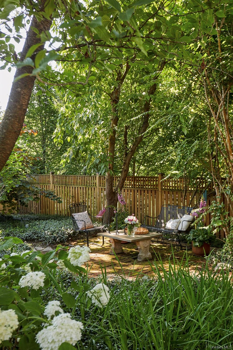 Set on an expansive 7,405 sqft lot, the property boasts mature landscaping including original brick patio and bluestone pathways, complemented by stone benches and stunning trees like Japanese cherry and redbud alongside abundant perennials. The wraparound porch, complete with enclosed sunroom, provides a perfect setting for leisure. A private deck accessible from the kitchen offers ideal entertaining space with stairs leading to the backyard's "secret garden", while the detached original carriage house could serve as studio space.