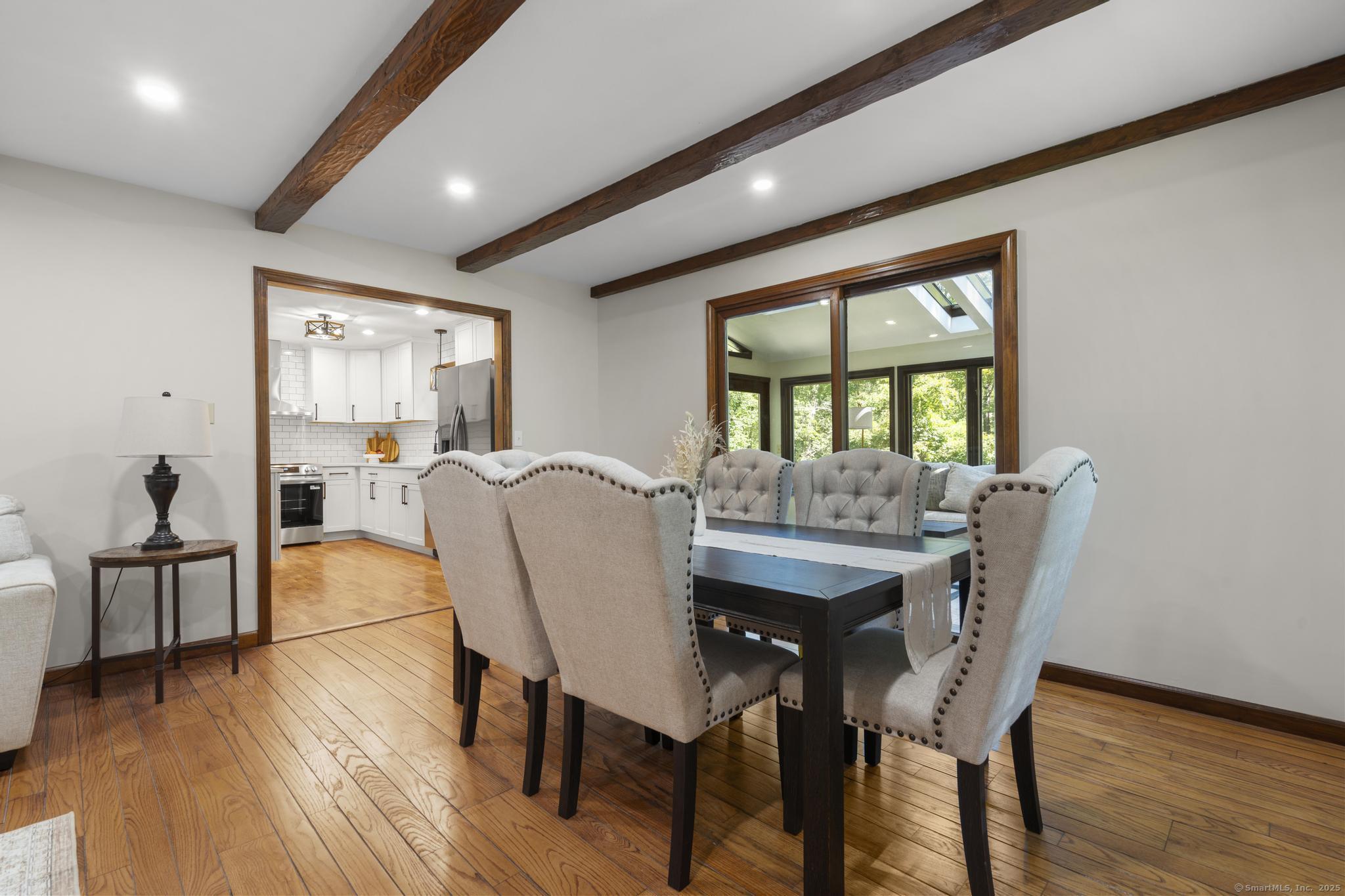 DescriptionThis beautifully updated 4-bedroom, 2.5-bath home sits on more than 2 private acres and has been completely renovated from top to bottom. Every detail has been thoughtfully designed to combine modern comfort with timeless style. Inside, the brand-new kitchen features sleek cabinetry, quartz countertops, stainless steel appliances, and a subway tile backsplash - the perfect space for everyday living and entertaining. The spacious living areas include a sun-filled family room with skylights and walls of windows, a cozy living room with exposed beams and a brick fireplace, and a formal dining area. In this home you will find four bedrooms, including a serene primary suite with its own full ensuite bathroom on the main level. All bathrooms have been fully renovated with modern finishes. The lower level offers a huge finished basement, providing endless options for a playroom, media space, or home gym. Outside, enjoy multiple decks and patios that extend your living space into the private, wooded lot. Practical updates bring peace of mind, including a brand-new septic system, new water filtration system, new heating/cooling, and all-new finishes throughout. The oversized 2-car attached garage provides plenty of storage and convenience. Located on over 2 acres, this home offers both privacy and convenience - a move-in ready retreat that truly has it all.Amenities- Auto Garage Door Opener