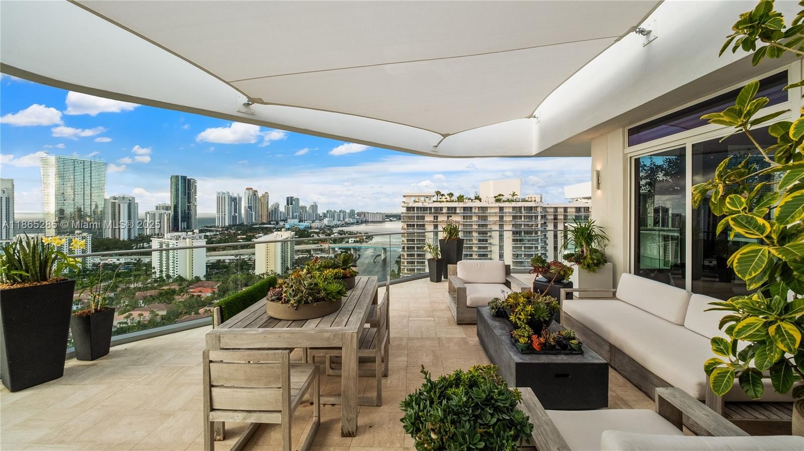 Experience luxury living in this exclusive Penthouse with breathtaking direct ocean and Intracoastal views. Perfectly located near Aventura Mall, beaches, and fine dining, this 5-bedroom, 3.5-bath residence features two master suites, including a primary with a custom women's closet and a stunning Versace-tiled bath. The gourmet kitchen boasts Wolf & Sub-Zero appliances, Italian finishes, and Cristalito countertops with underlighting. Elegant interiors include custom cabinetry, a Versace-trimmed fireplace, Sonos audio, Lutron lighting, and remote blinds. A wraparound balcony invites outdoor dining and entertaining. Resort-style amenities include pool, valet, fitness center, restaurant, theatre, social room & marina.Fully funded reserves.