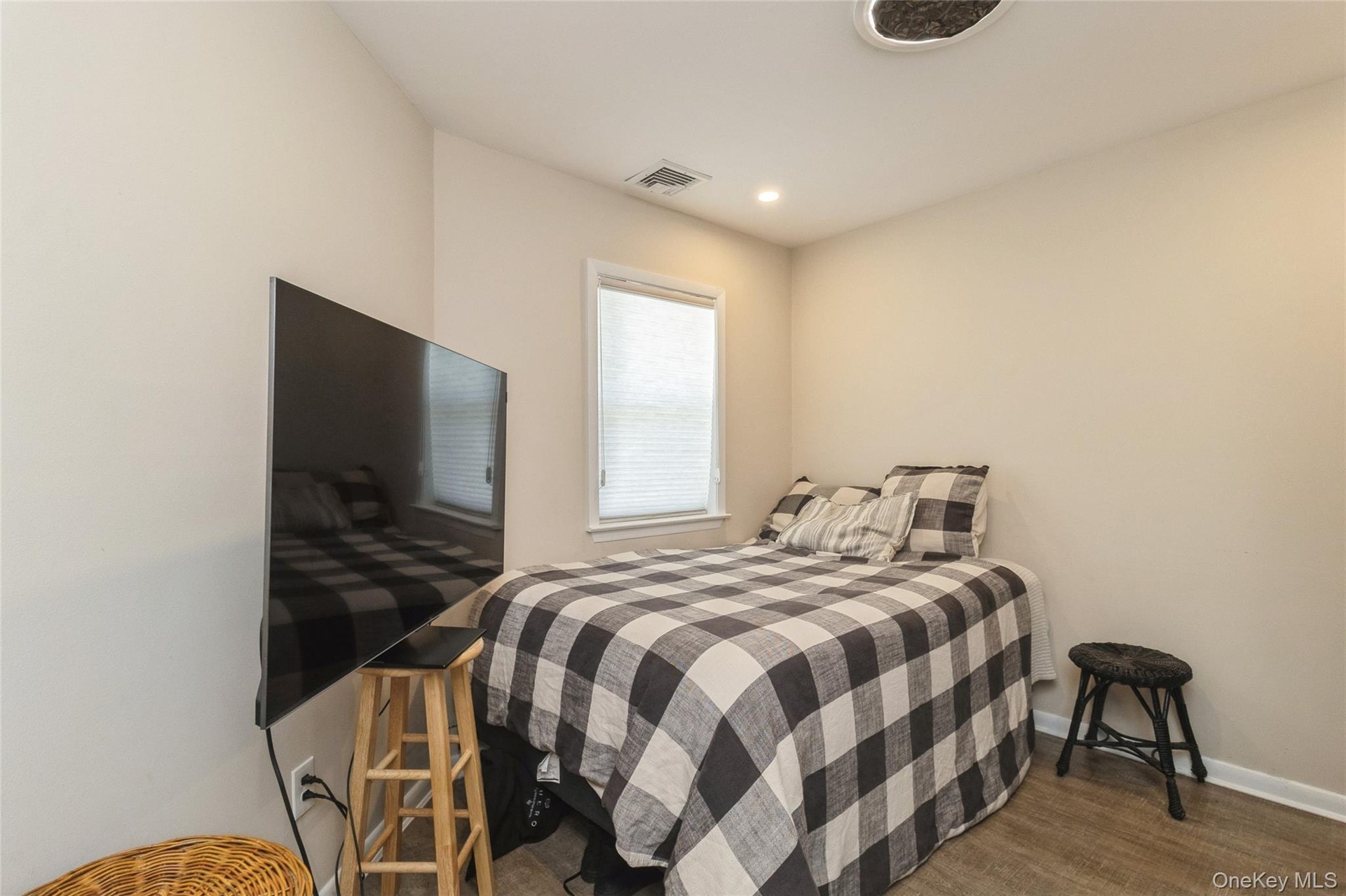 - Second bedroom featuring wood-finished floors and recessed lighting.