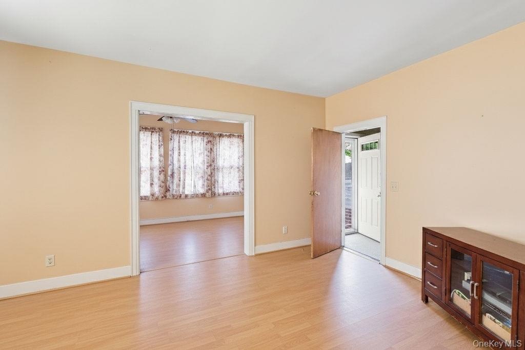 - Empty room featuring light wood-type flooring and baseboards