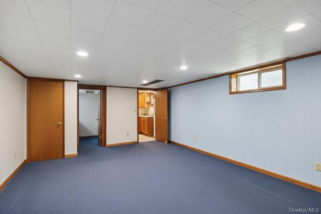 - Basement with carpet and recessed lighting