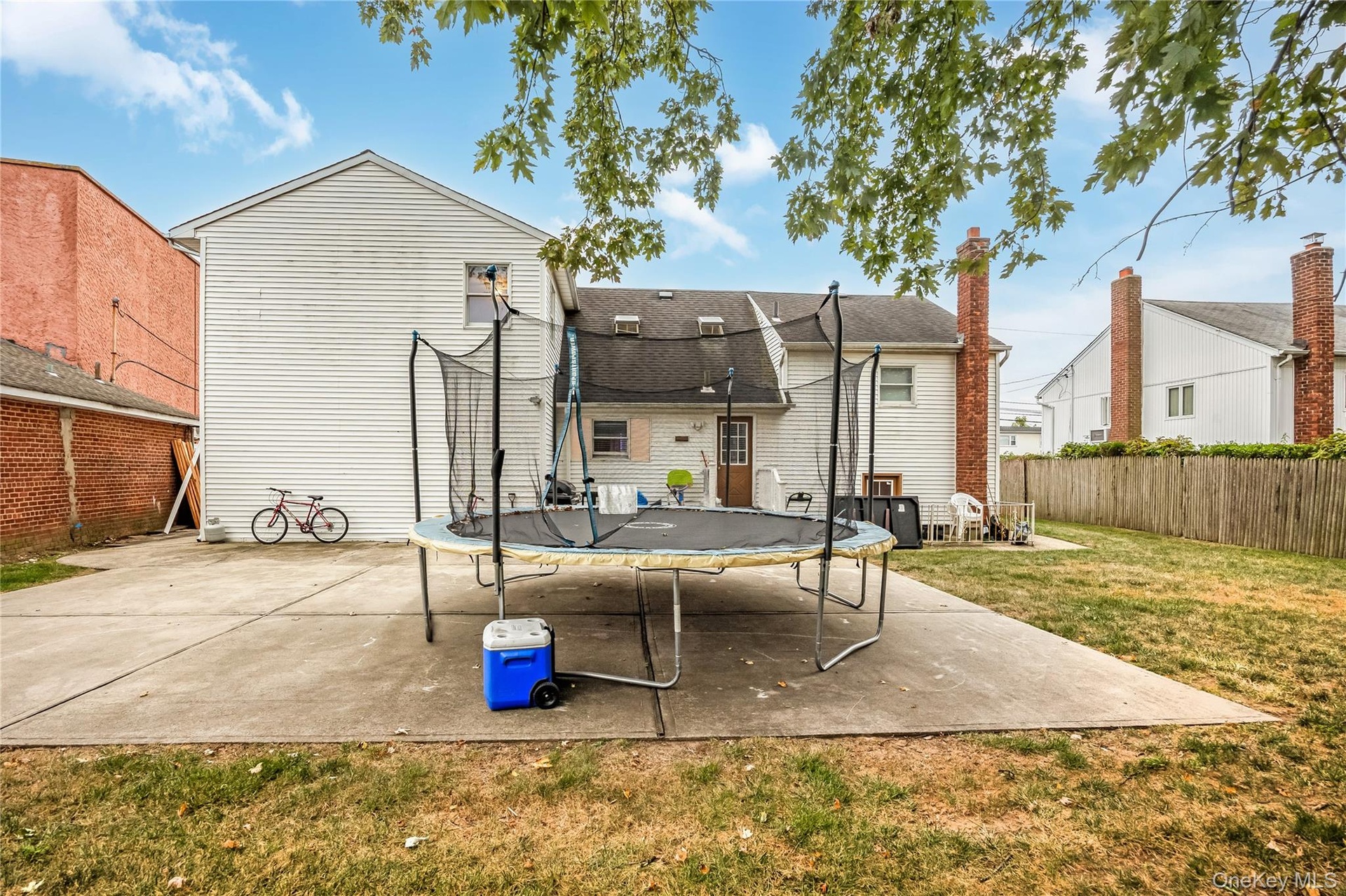 - Back of property featuring a patio area and a trampoline