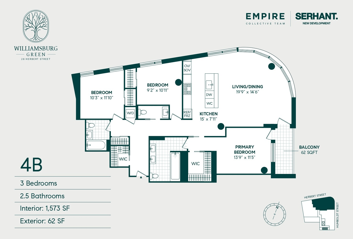 Lifestyle amenities include an indoor fitness studio with outdoor terrace, secure package room, and a landscaped rooftop terrace with panoramic views of Manhattan and Brooklyn. Private parking and rooftop cabanas are also available. Just beyond your door, enjoy the charm of nearby McCarren, McGolrick, and Cooper Parks, plus beloved cafés, restaurants, boutiques, and convenient transit.