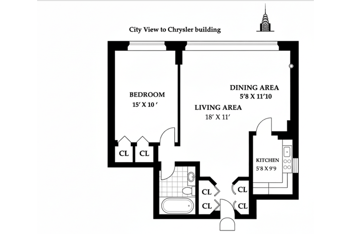 Step into approximately 650 square feet thoughtfully designed space which actually feels larger with a Chrysler building view!