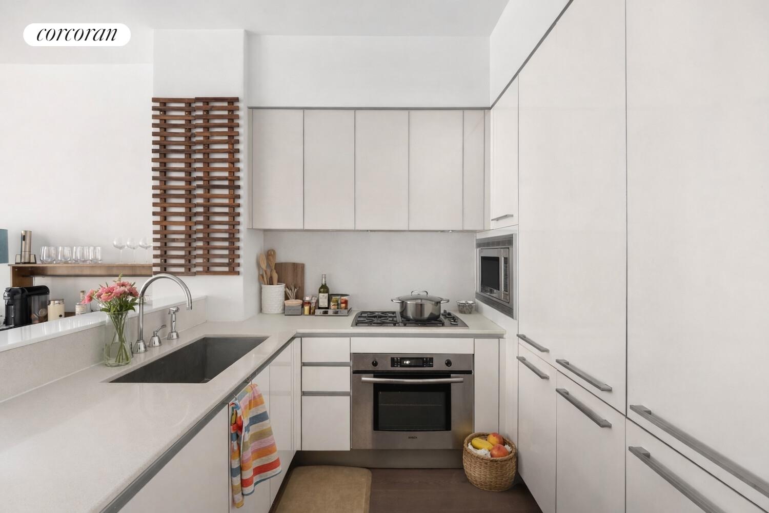 The expansive living and dining area provides a tranquil open flow and easily adapts for hosting, relaxing, or working from home, while the chef's kitchen-with Poliform cabinetry, premium Bosch, Miele, Liebherr appliances, Caesarstone countertops, and a Lazza crystalized breakfast bar-invites both cooking and conversation. The spacious king-sized primary suite offers 2 generous closets, and an en-suite spa-inspired bath. With dual entry from both the bedroom and foyer - the bathroom elevates daily routines and includes a dual vanity and Waterworks fittings, polished black marble counters, Italian glass tile, built-in storage, and a deep soaking tub. An in-unit washer/dryer completes the home adding another level of convenience. Need more storage space, you say? This unit transfers with not 1, BUT 2 side by side storage units located on the same floor!! What more could you ask for?!