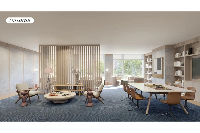 With a full floor of vitality and entertaining amenities, VU provides residents with a variety of offerings that are designed to enhance the quality of everyday living. From the fitness center to the screening room, to the lounge and the pantry, Paris Forino designed each space with thoughtful intention toward how New Yorkers live today. The beauty of VU's attended lobby resides in the subtle refinements of European white oak paneling paired with honed Palladium travertine floors. High up on the 36th floor sits the rooftop terrace, where lush greenery and plush furniture invite you to take in unrivaled city views.